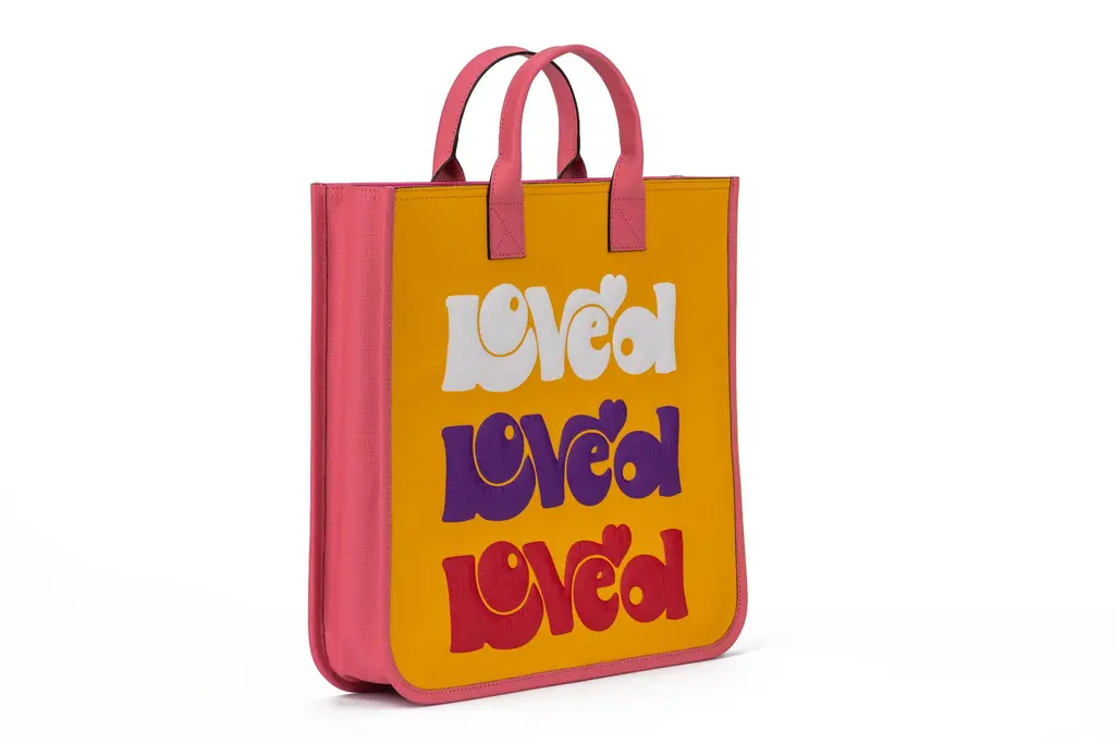 Gucci love tote in yellow with rainbow design multicolor. The bag is new and comes with booklets, tag and original dustcover. Handles measure 3".