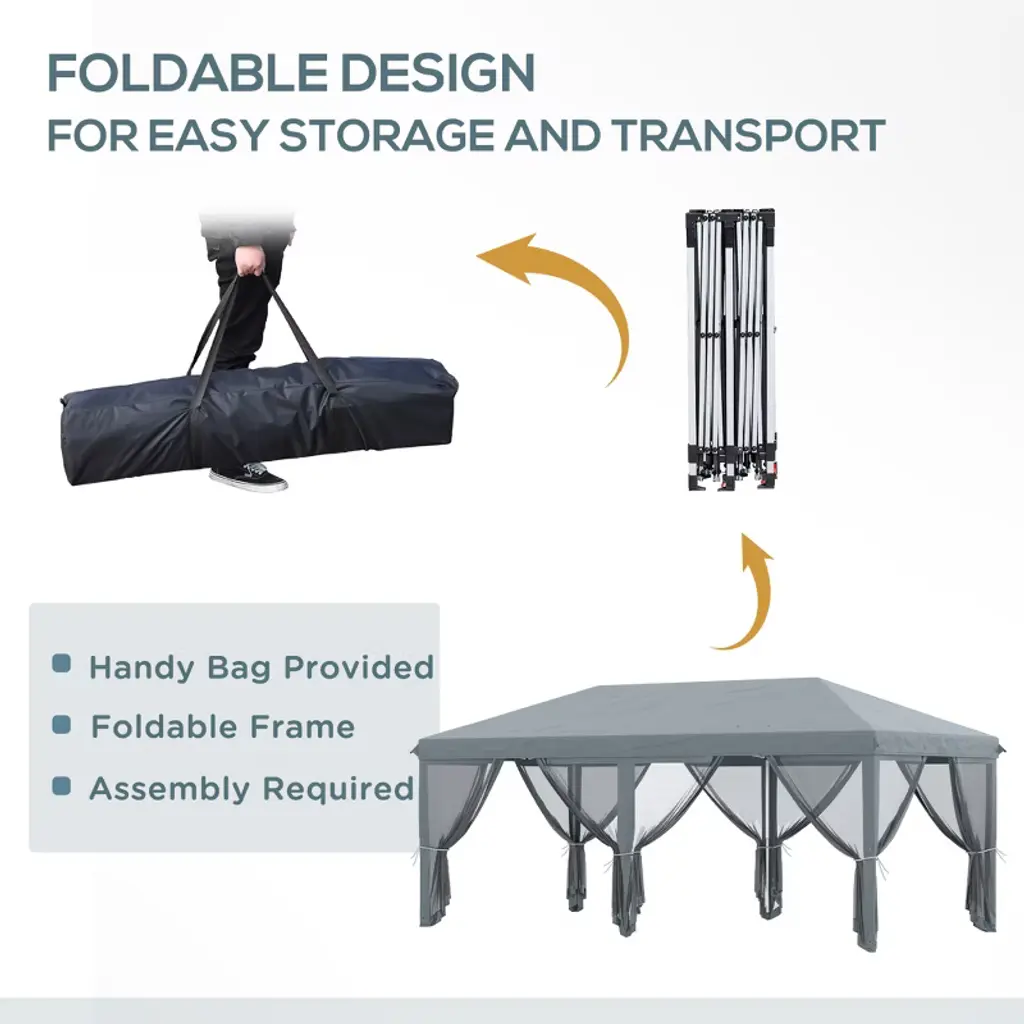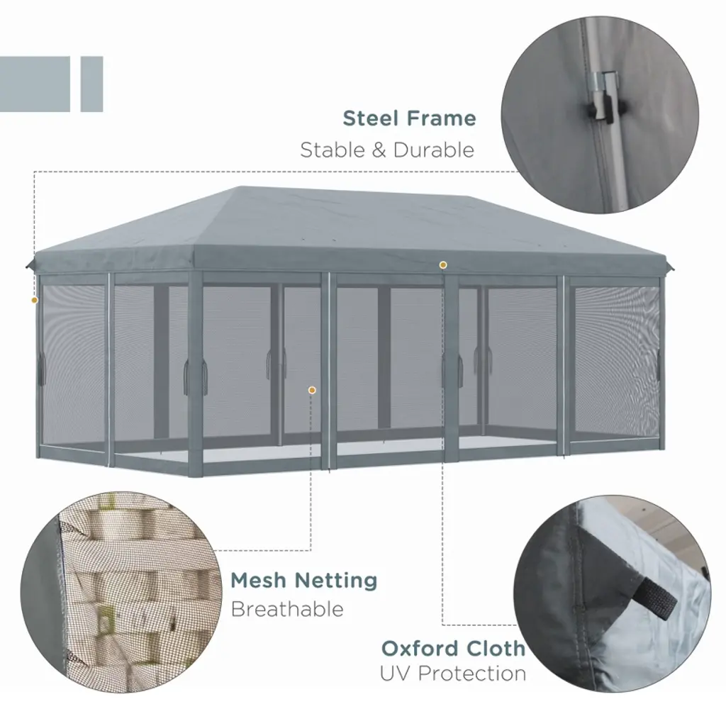 Gulches 10' X 20' Pop Up Canopy Tent With Netting, Heavy Duty Instant Sun Shelter For Outdoor Parties, Includes Carry Bag For Garden & Patio (Gray)