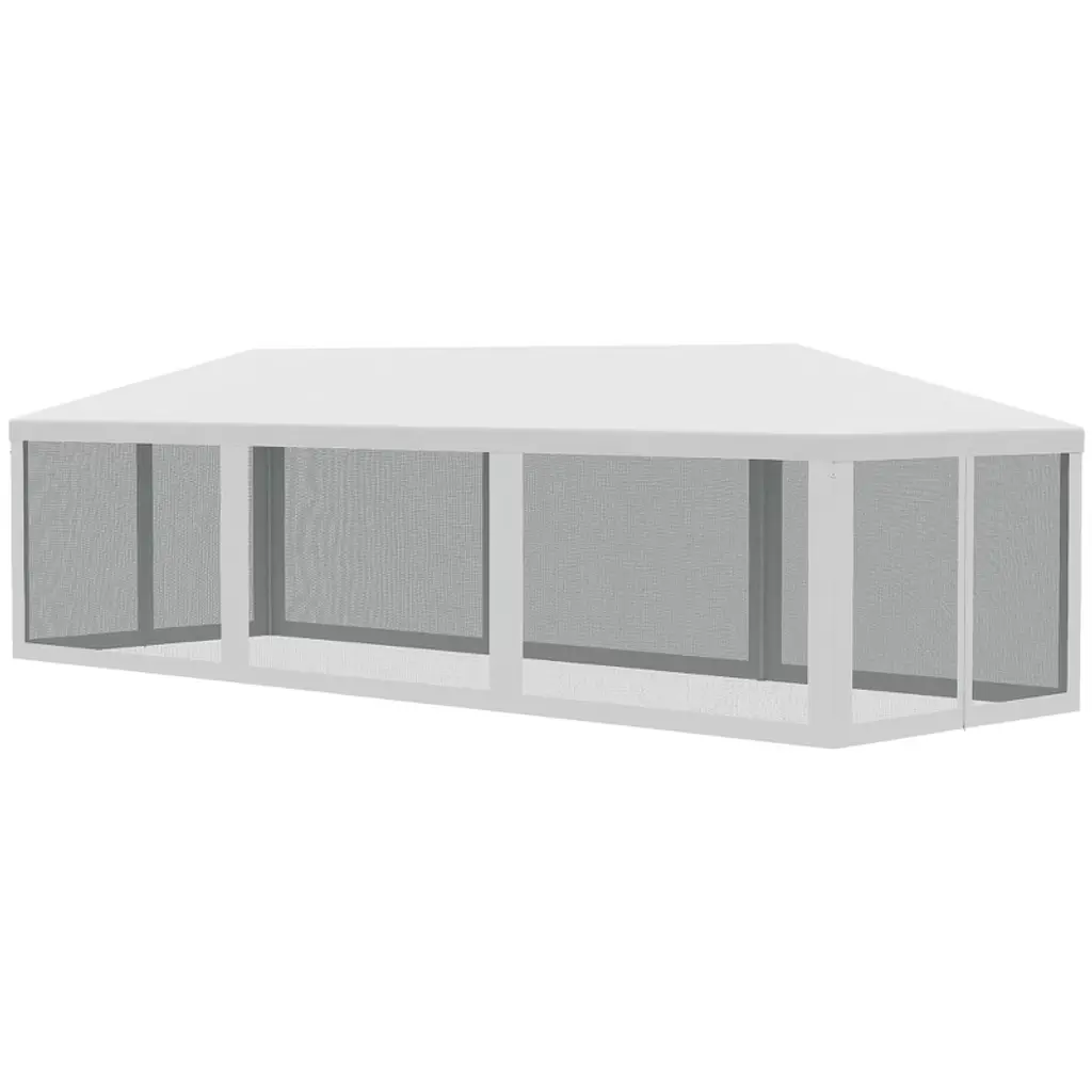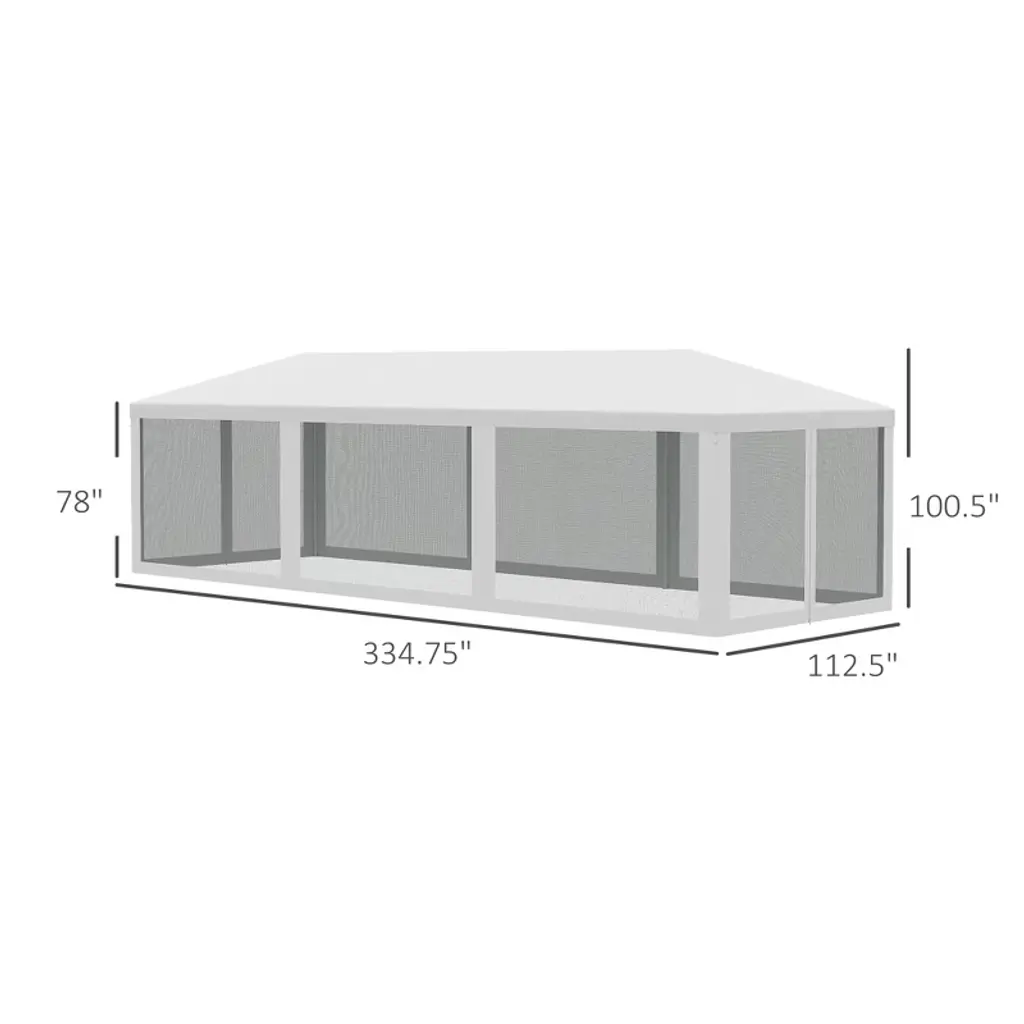 Gulches 10' X 28' Party Tent Canopy, Outdoor Event Shelter Gazebo With 8 Removable Mesh Sidewalls, Zipper Doors, Steel Frame, White