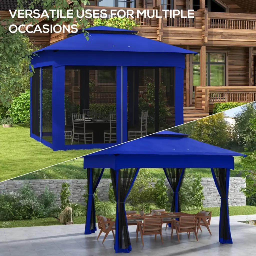 Gulches 11'x11' Pop Up Canopy, Outdoor Patio Gazebo Shelter With Removable Zipper Netting, 114 Sq Ft Shade, Carry Bag For Backyard & Garden, Blue