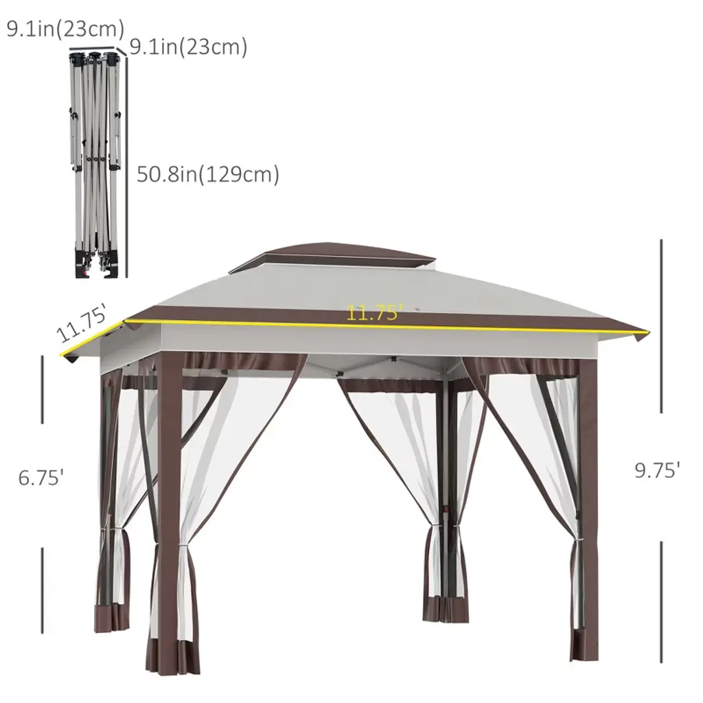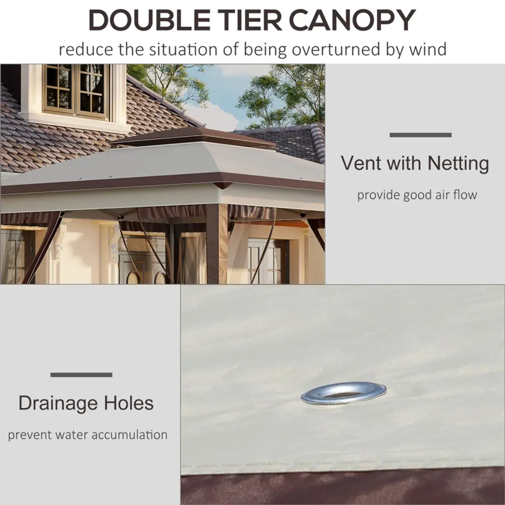 Gulches 12' X 12' Pop Up Canopy Tent With Netting & Carry Bag, Instant Sun Shelter, Height Adjustable For Outdoor & Garden, Beige/brown