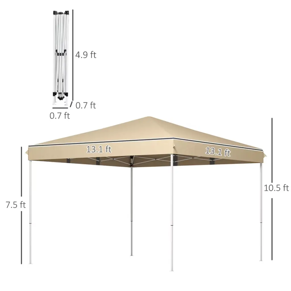Gulches 13' X 13' Pop Up Canopy Tent, Instant Sun Shelter For Outdoor Parties, Height Adjustable With Wheeled Carry Bag For Garden & Patio (Beige)
