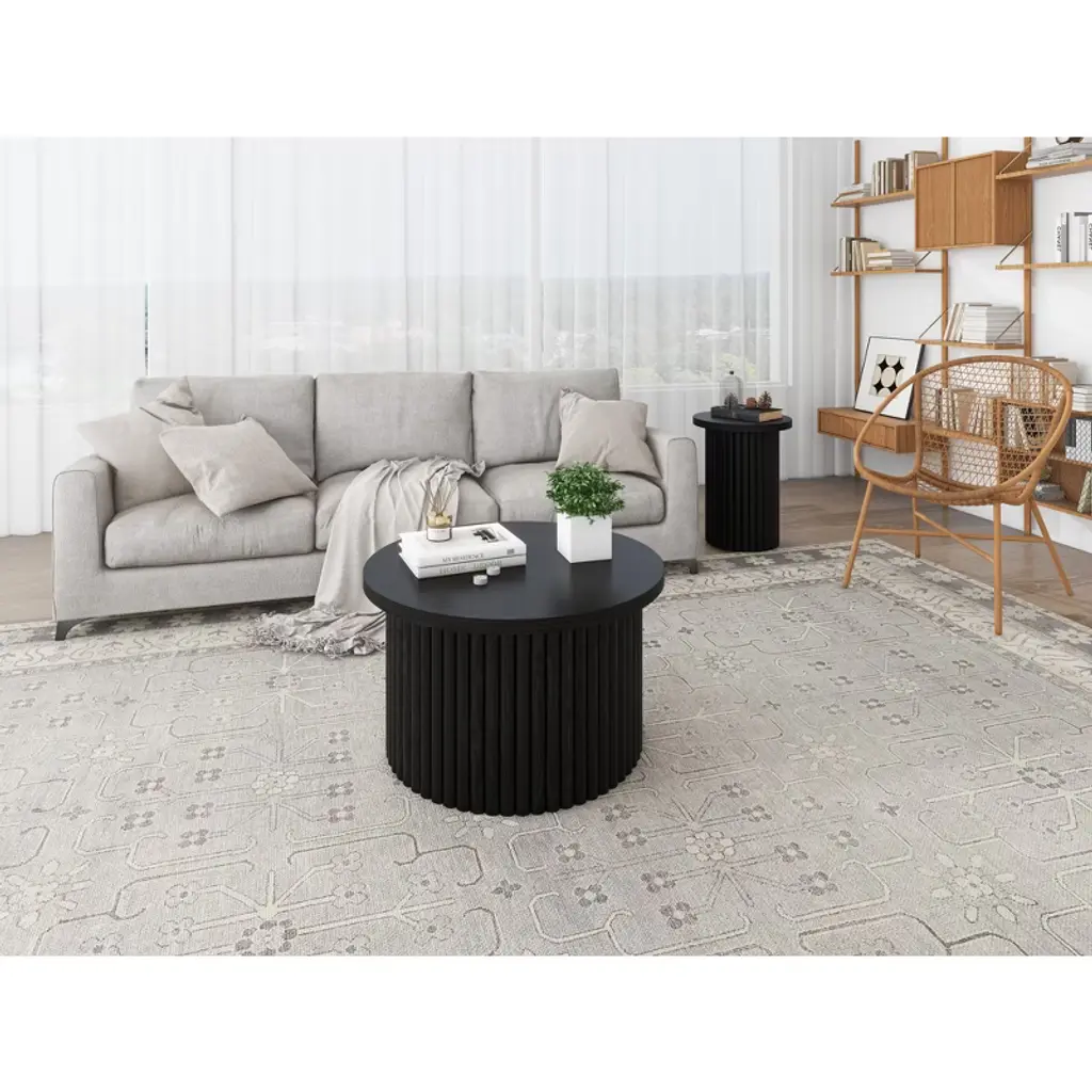 Gulches 2-piece Round Coffee Table Set - Modern Accent Side End Tables For Living Room Apartment, Versatile Use