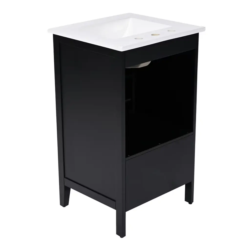 Gulches 20 Inch 1 Sink Black Modern Freestanding Bath Vanity With White Ceramic Top
