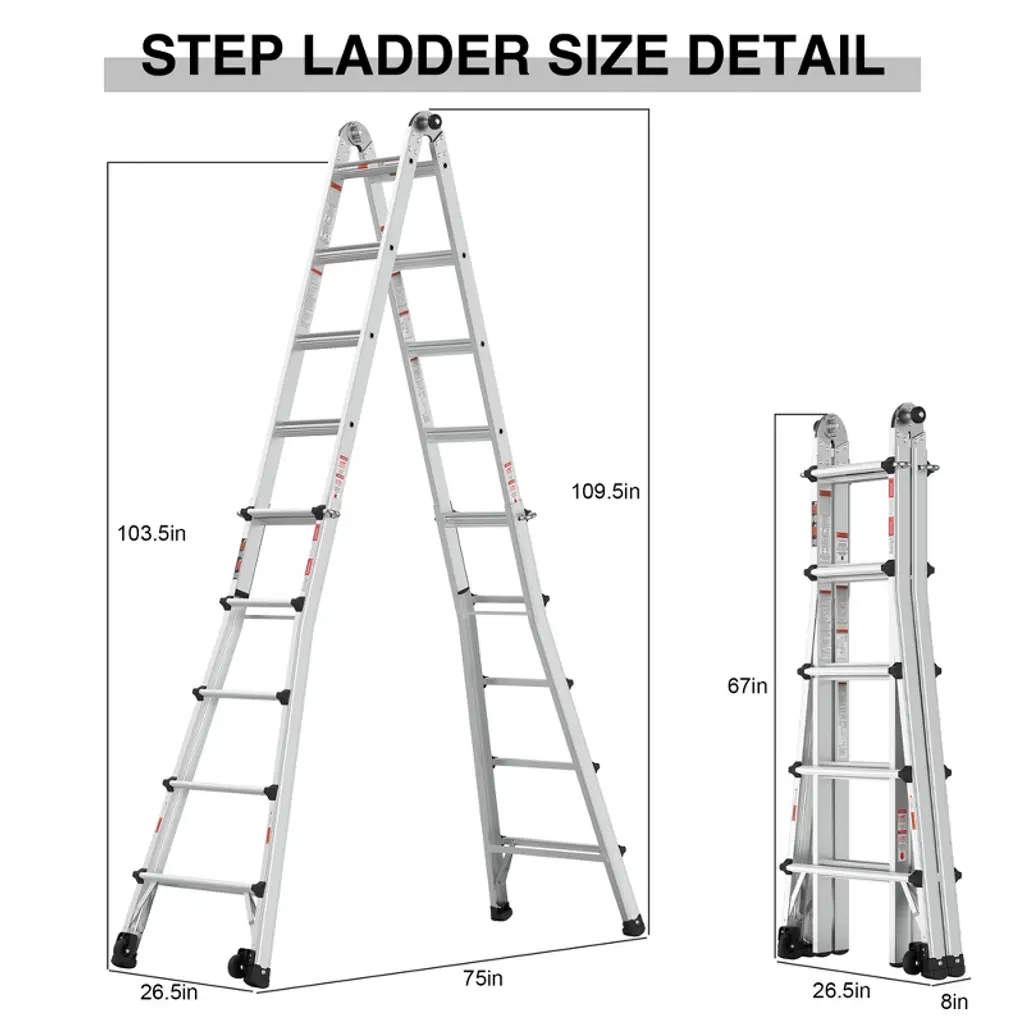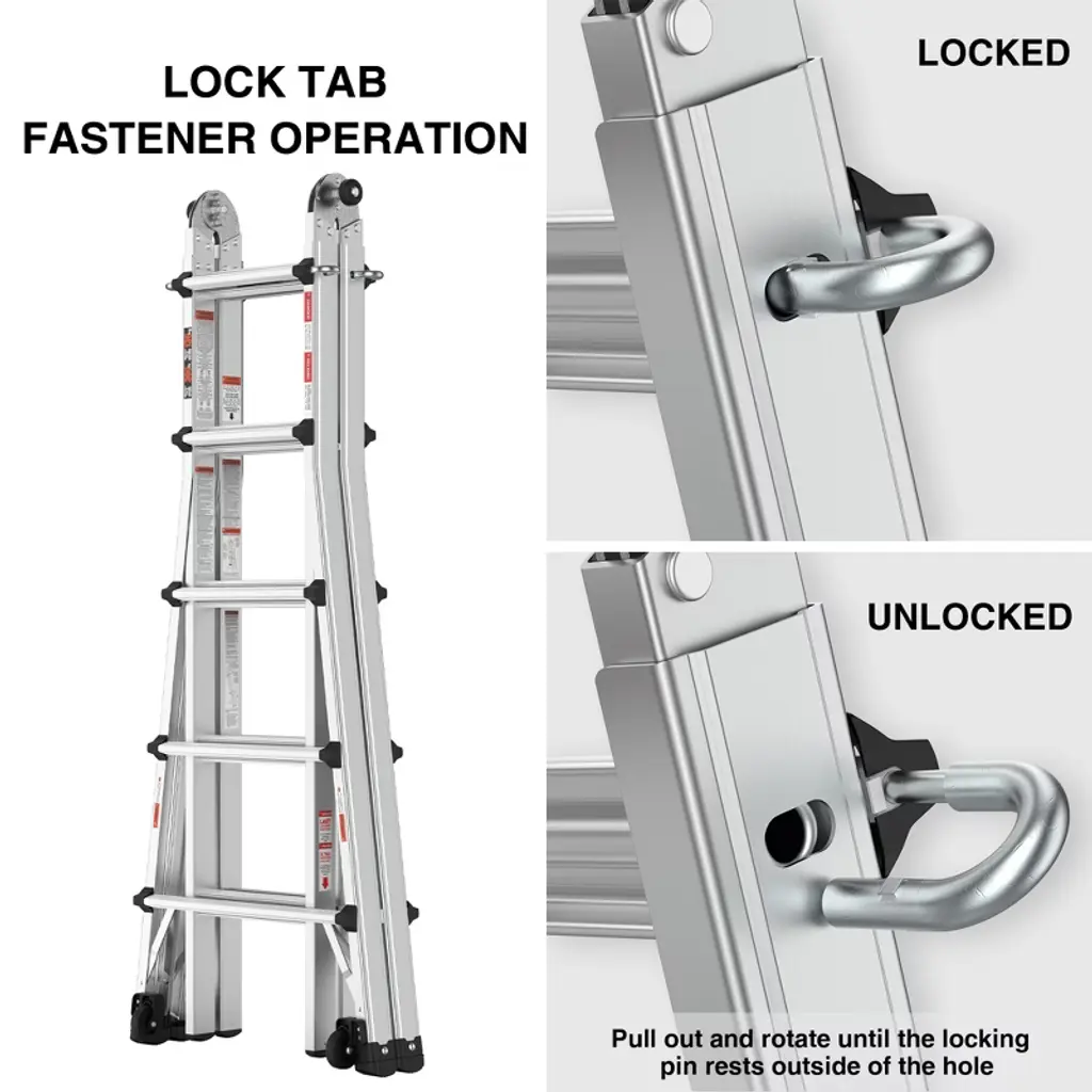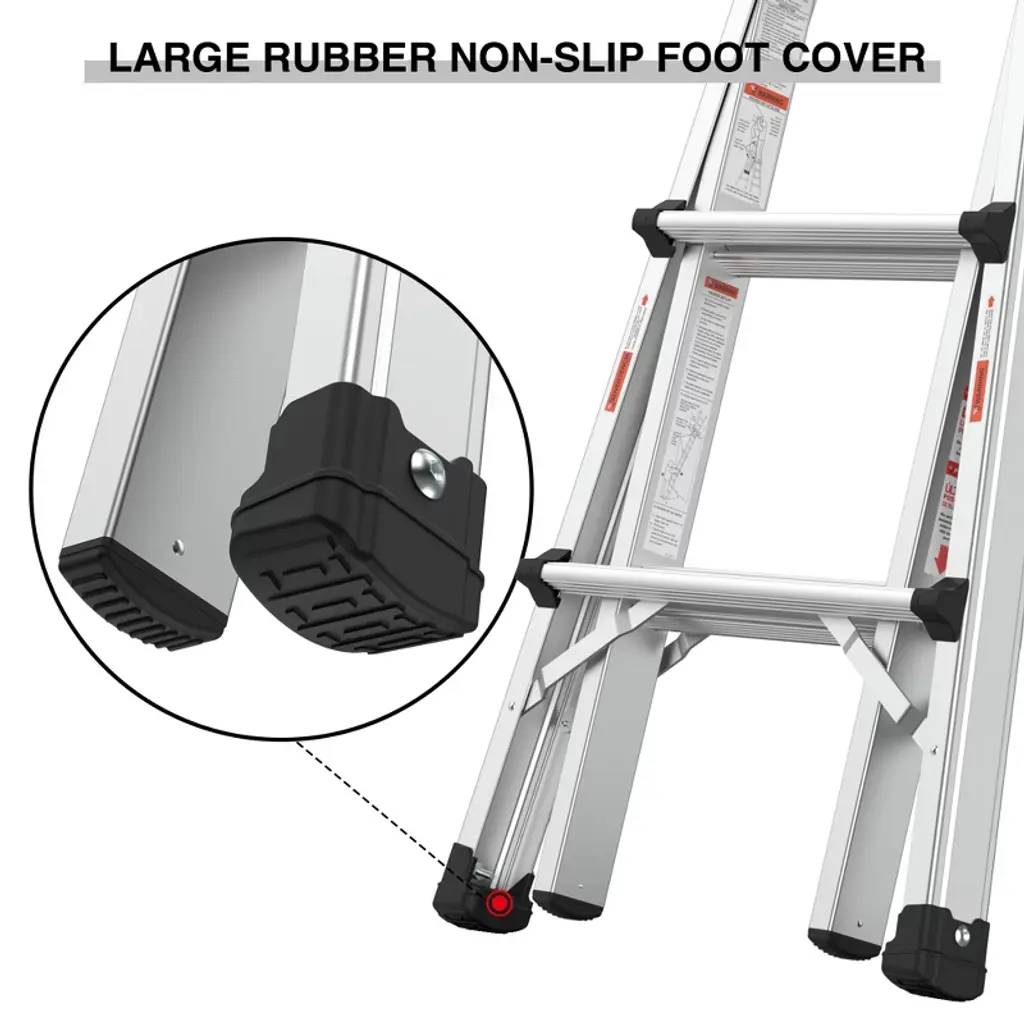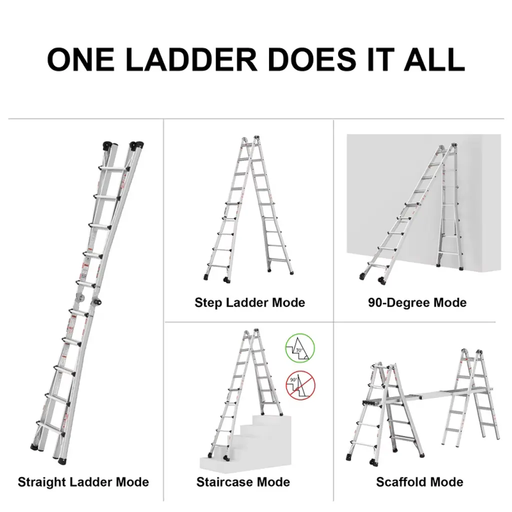 Elevate your work experience with the Gulches 22FT Aluminum Multi-Position Ladder. This versatile ladder adapts to various configurations, including A-frame and extension, making it perfect for any task. With enhanced safety features like non-slip steps and large rubber feet, you can work confidently at heights. The convenient wheels allow for easy mobility between job sites, while the robust construction supports up to 300lbs. Experience flexibility and reliability with every use!