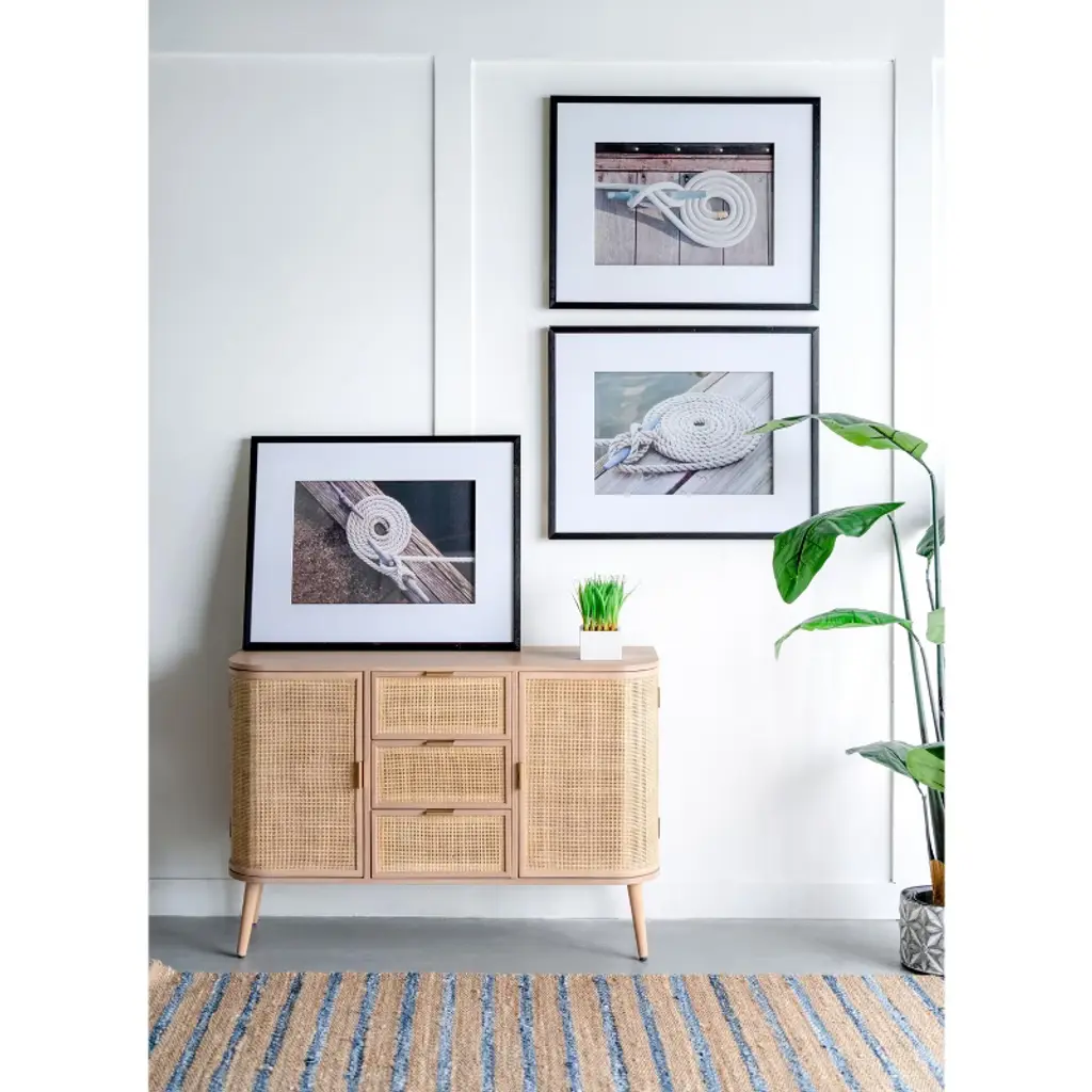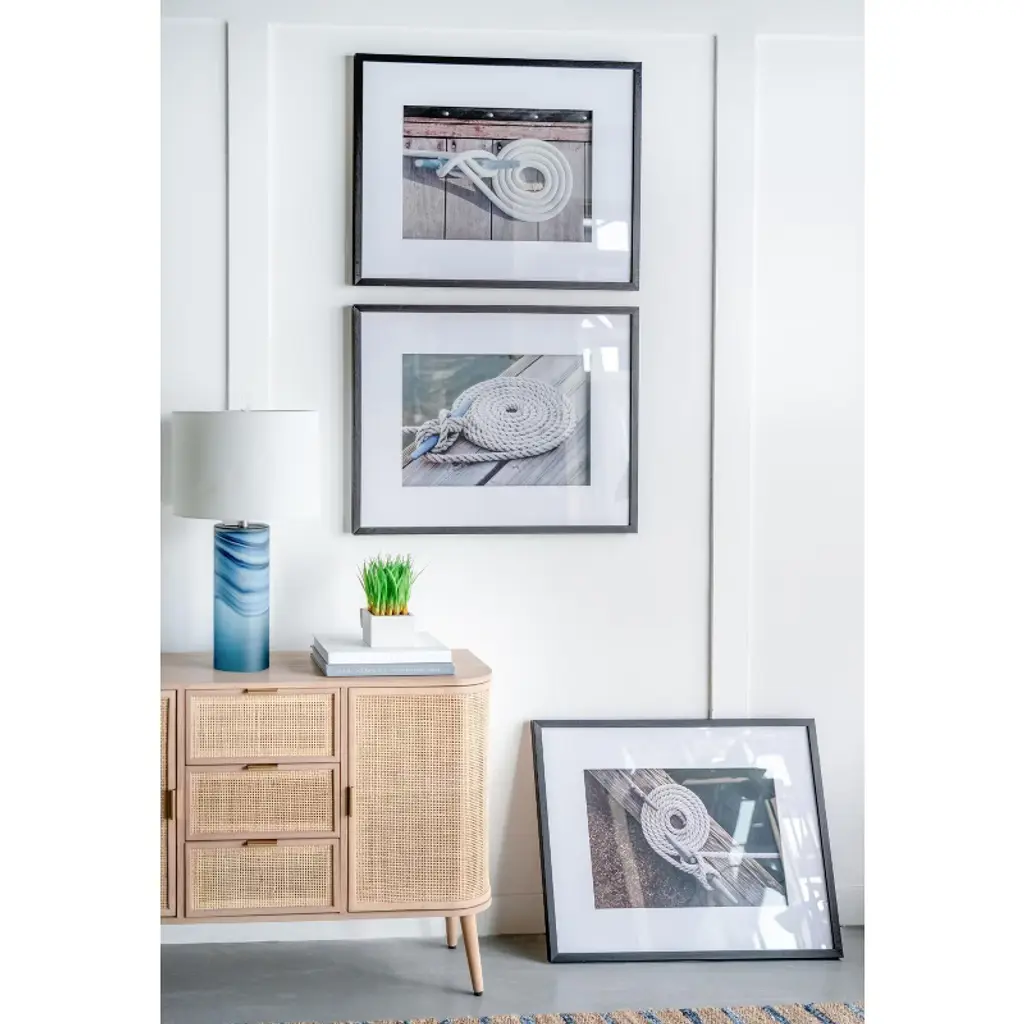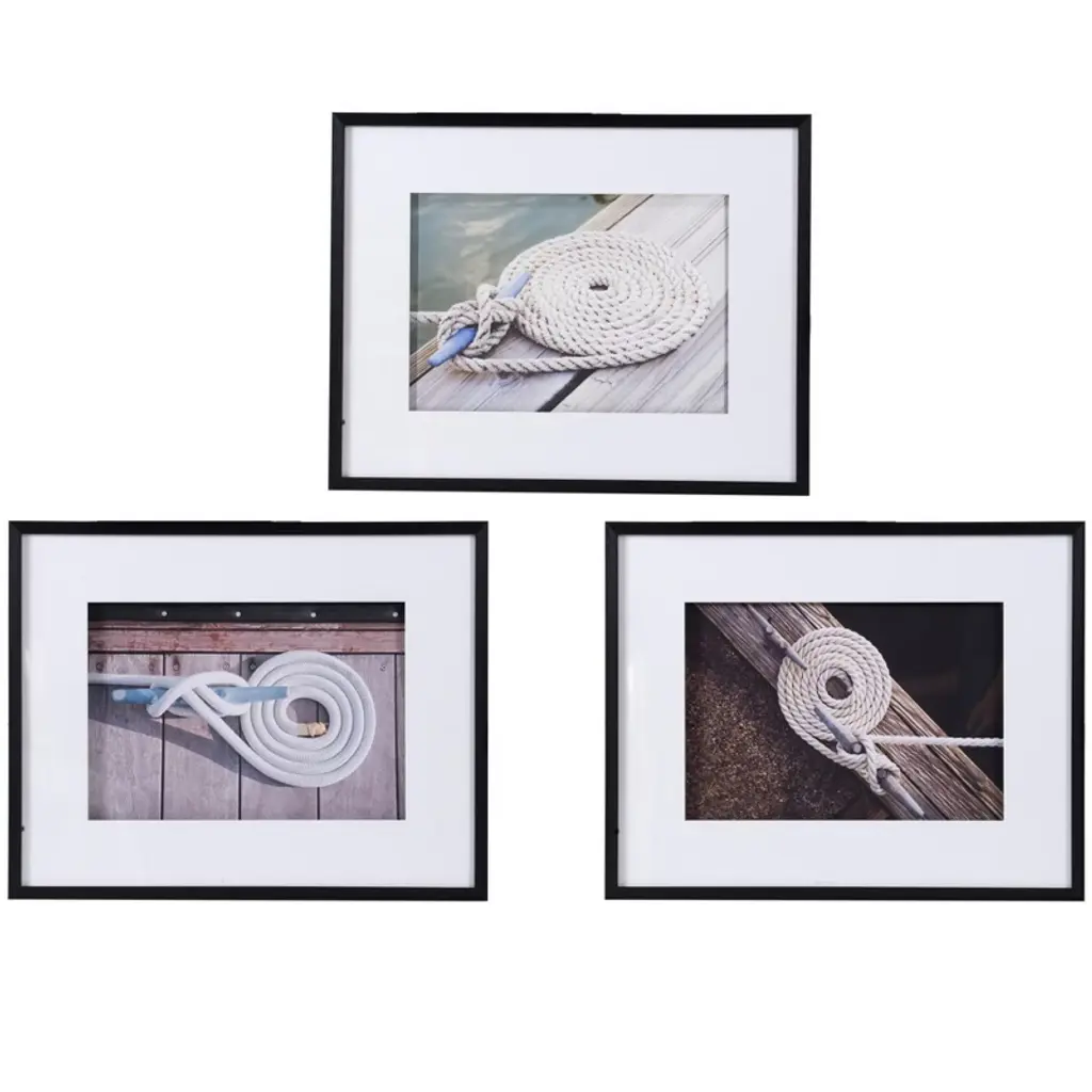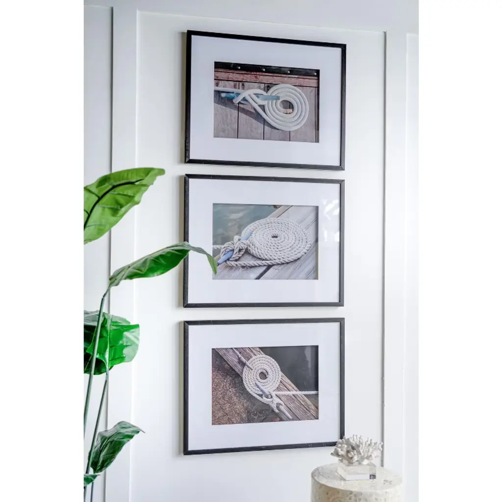 Transform your living space with the Gulches 30" x 24" Rope Wall Art Set, featuring three stunning pieces framed in sleek black. Perfect for enhancing the decor of your living room, bedroom, dining room, or office, this set adds a touch of sophistication and style. Each piece measures 29.9" x 23.6" and is crafted from a combination of materials, including a durable PS frame, glass, paper, and MDF. Weighing 19.1 lbs, this eye-catching wall art is designed to make a statement while complementing your interior design effortlessly.
