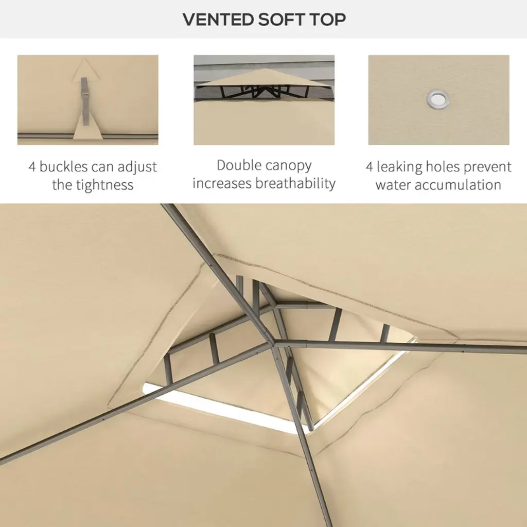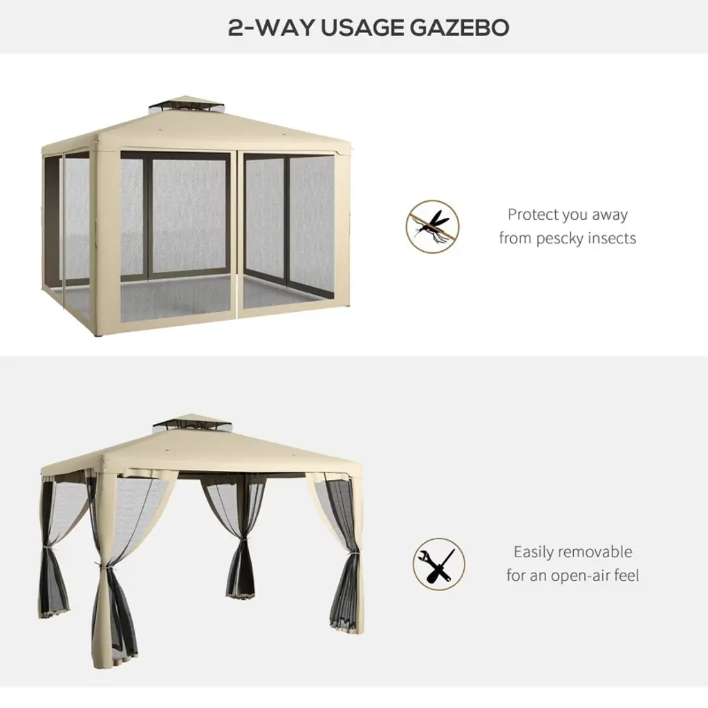 Gulches 9.6' X 11.6' Patio Gazebo, Outdoor Canopy Shelter With 2-tier Roof And Netting, Steel Frame For Garden, Lawn, Backyard, And Deck, Taupe