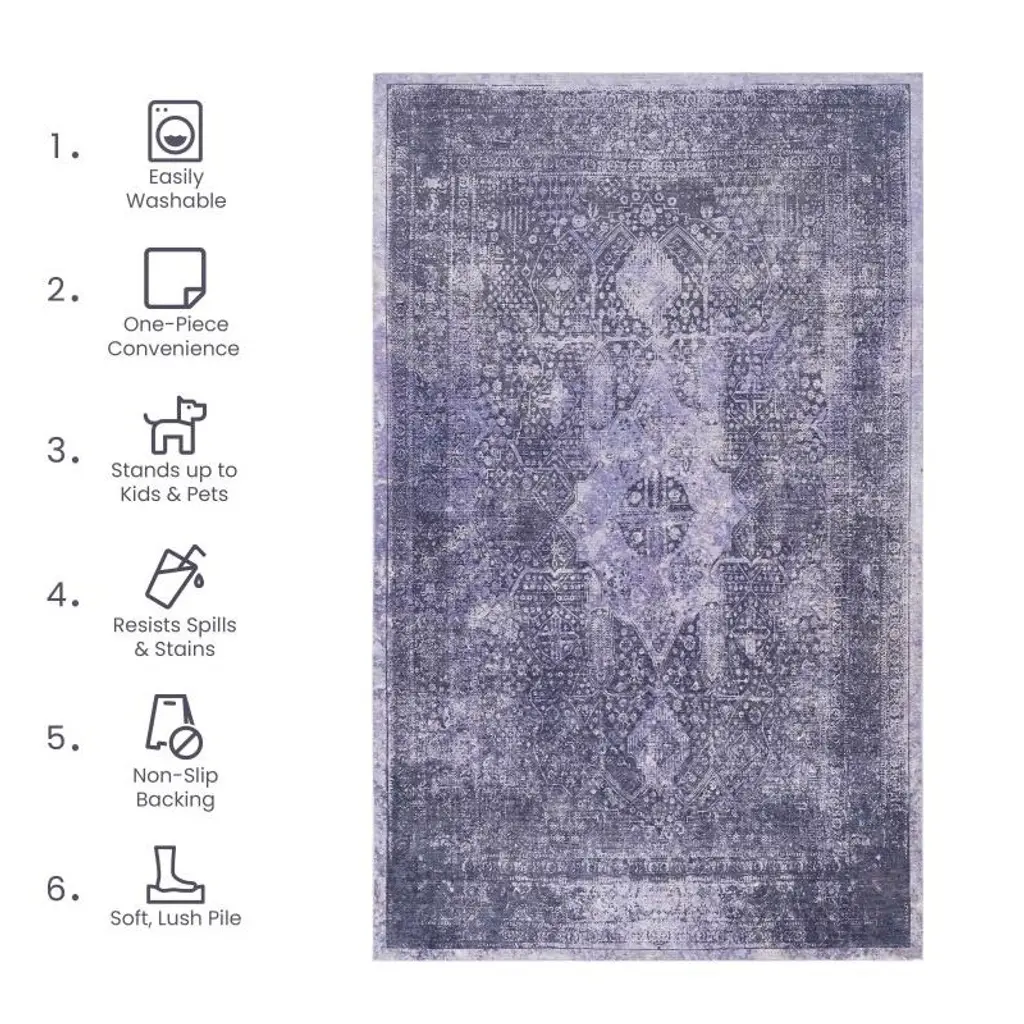 Gulches 2' x 3' anthracite doormat rug blends elegance and practicality. Made with super-soft, durable chenille fibers, it’s machine washable for easy upkeep. Features a non-slip TPR backing, stain resistance, and a 0.14-inch low pile—ideal for high-traffic spots like entryways, kitchens, or playrooms. Kid and pet-friendly, it resists shedding and adds warmth to any space.