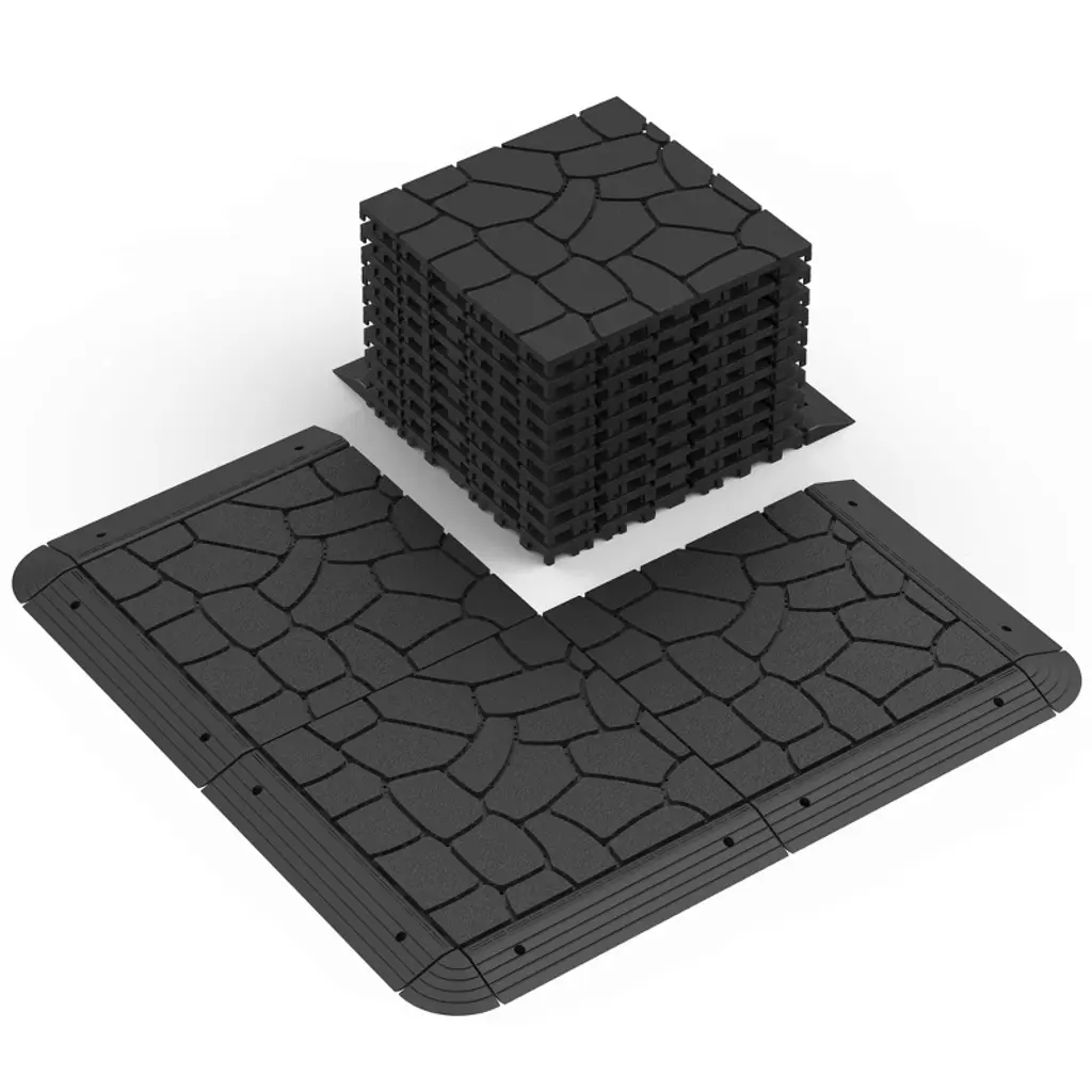 Gulches New Stone Texture 12" Patio Deck Tiles, Diy Module Interlocking Decking Tiles Floor Tile,44pcs Dark Gray