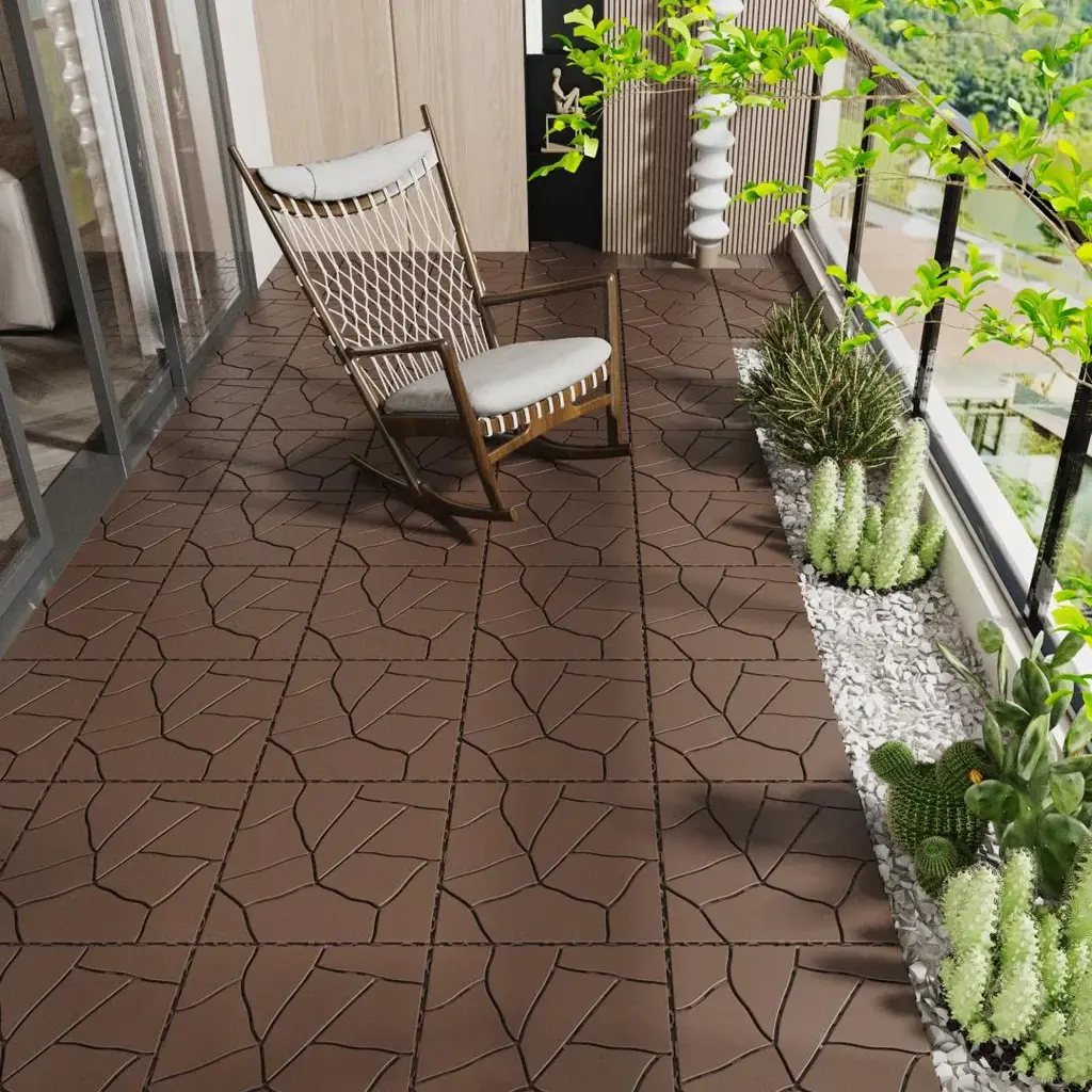 Revamp your outdoor spaces with Gulches New Stone Texture 12" Patio Deck Tiles in sleek dark gray! This 44-piece DIY module set features interlocking tiles that effortlessly combine style and functionality. Perfect for patios, walkways, or balconies, these durable tiles mimic the look of natural stone while providing easy maintenance. Create a modern, elegant outdoor oasis that stands the test of time!