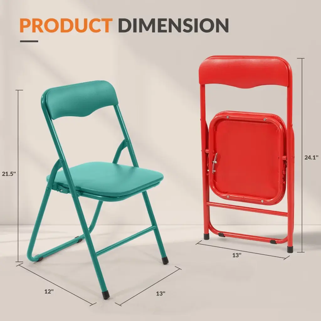 Gulches Pack Of 2 Steel Frame Metal Foam Padded Folding Chairs For Kids, Green/red