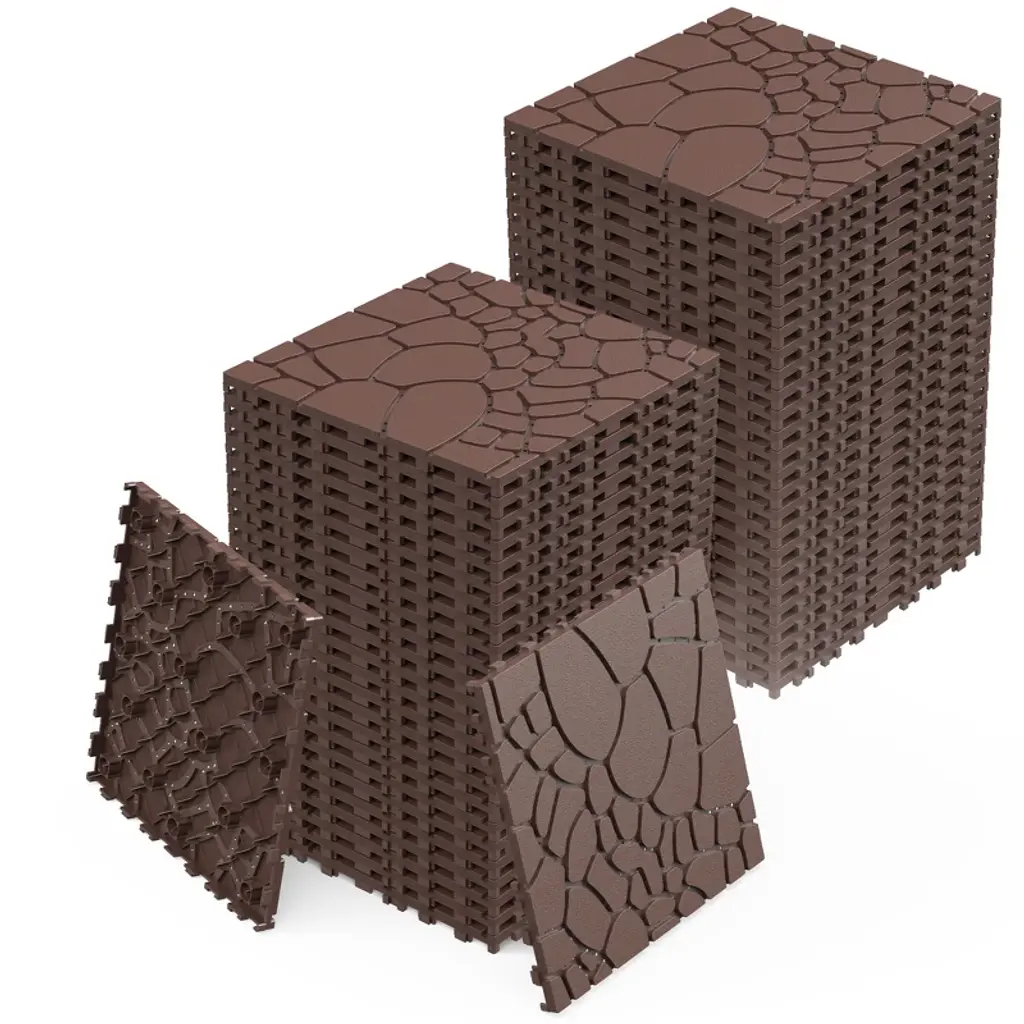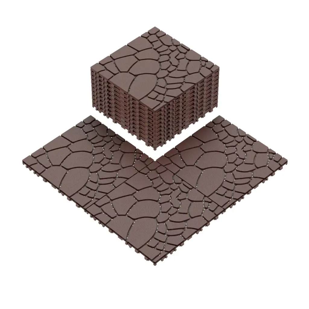 Gulches Stone Texture 12" Patio Deck Tiles,diy Module Interlocking Decking Tiles Floor Tile,44pcs Red Brown