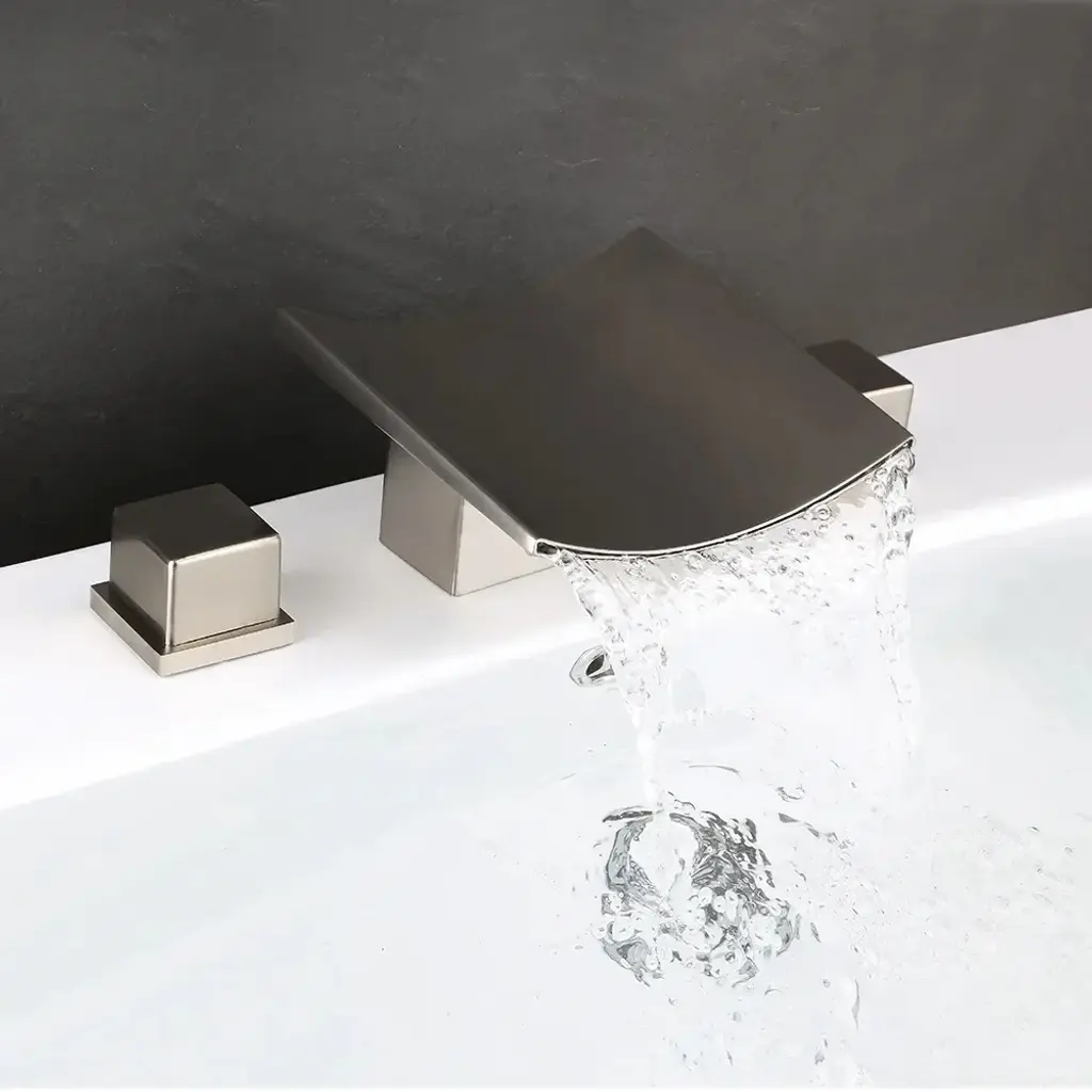 Elevate your bathroom with the Gulches Wall Mount Widespread Bathroom Faucet. This stylish faucet not only enhances your decor but also saves valuable countertop space. Featuring a wide waterfall spout design, it offers a large flushing area with a smooth, gentle water flow that mimics a natural waterfall effect. The precision control valve allows for easy adjustments to both temperature and water flow, ensuring a comfortable experience. Perfect for both bathroom sinks and bathtubs, this wall-mounted faucet combines functionality with modern elegance.