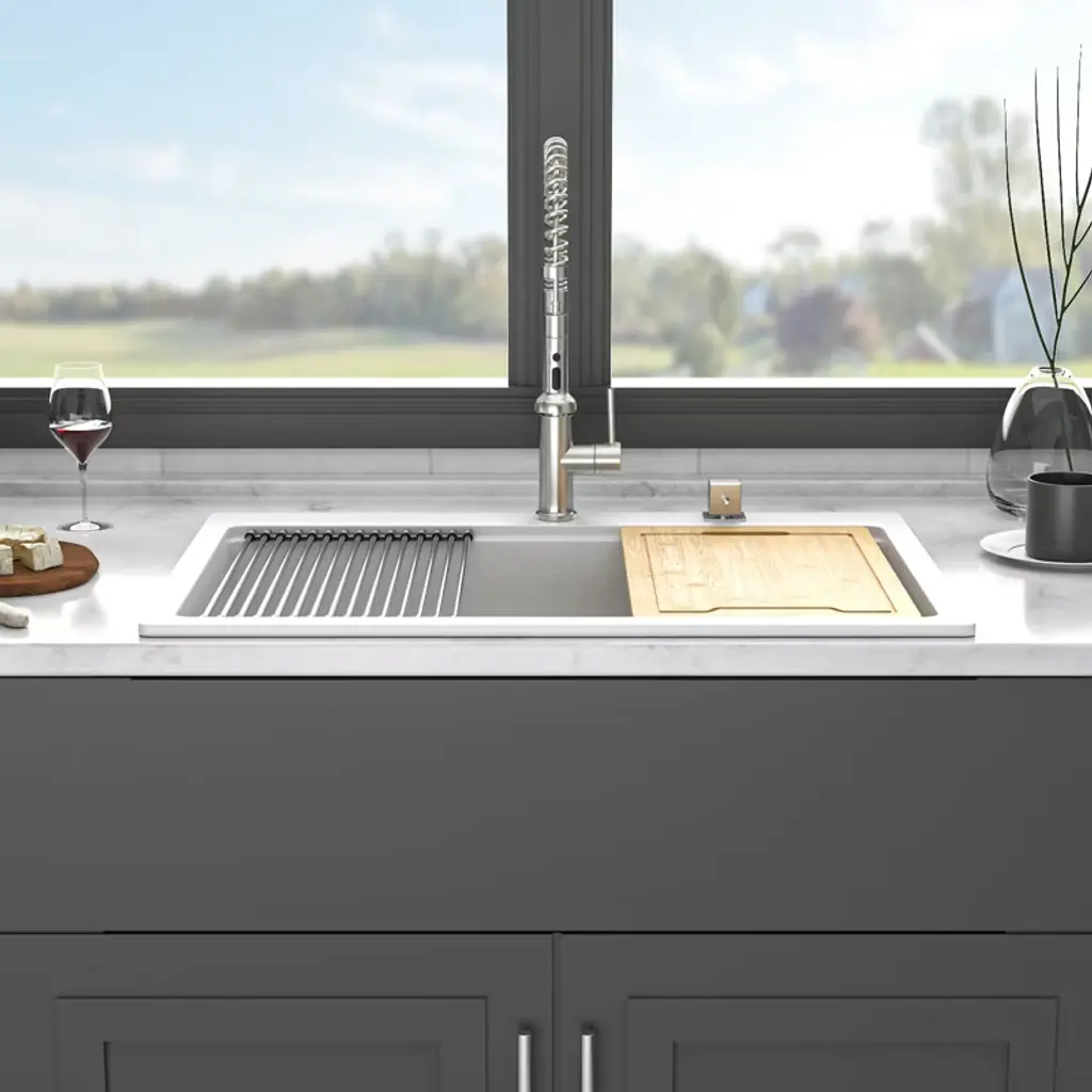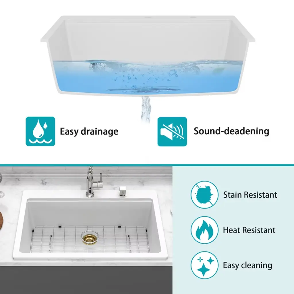 Gulches White Granite Composite Workstation Drop-in Quartz Kitchen Sink, 33"x22"