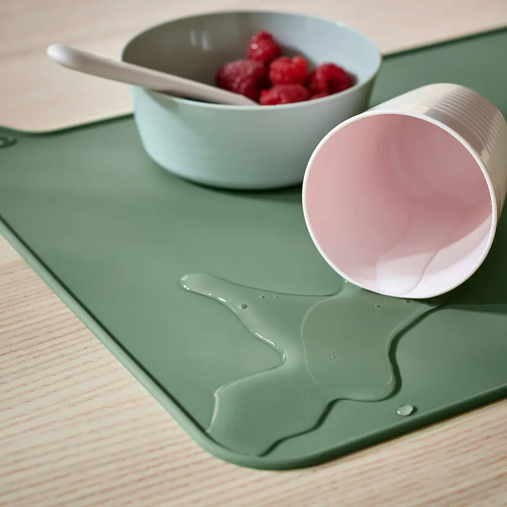 GULDVÄVARE Place mat - green 11 3/4x15 3/4 ". Place mat made of waterproof silicone that keeps it in place and protects the table from spills and scratches. Just as practical for mealtimes as when your child is drawing or painting. Recommended for children 6 months and older.