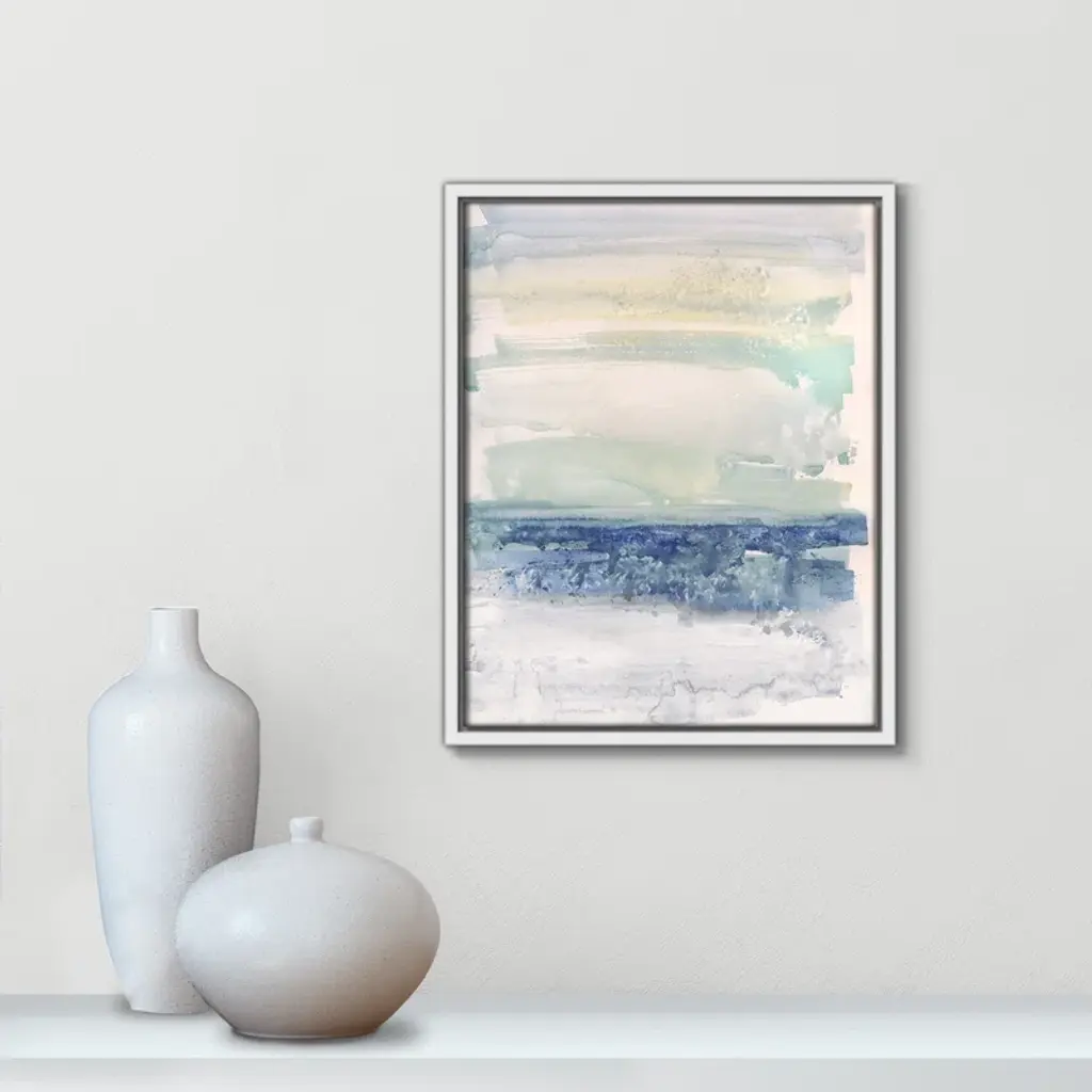 Muted brushstrokes, featuring the colors of the sea, inspired by the Emerald Coast adds life and beauty to any room. Update your decor with this water-inspired image, and shades of the ocean, that complement a wide variety of design choices.