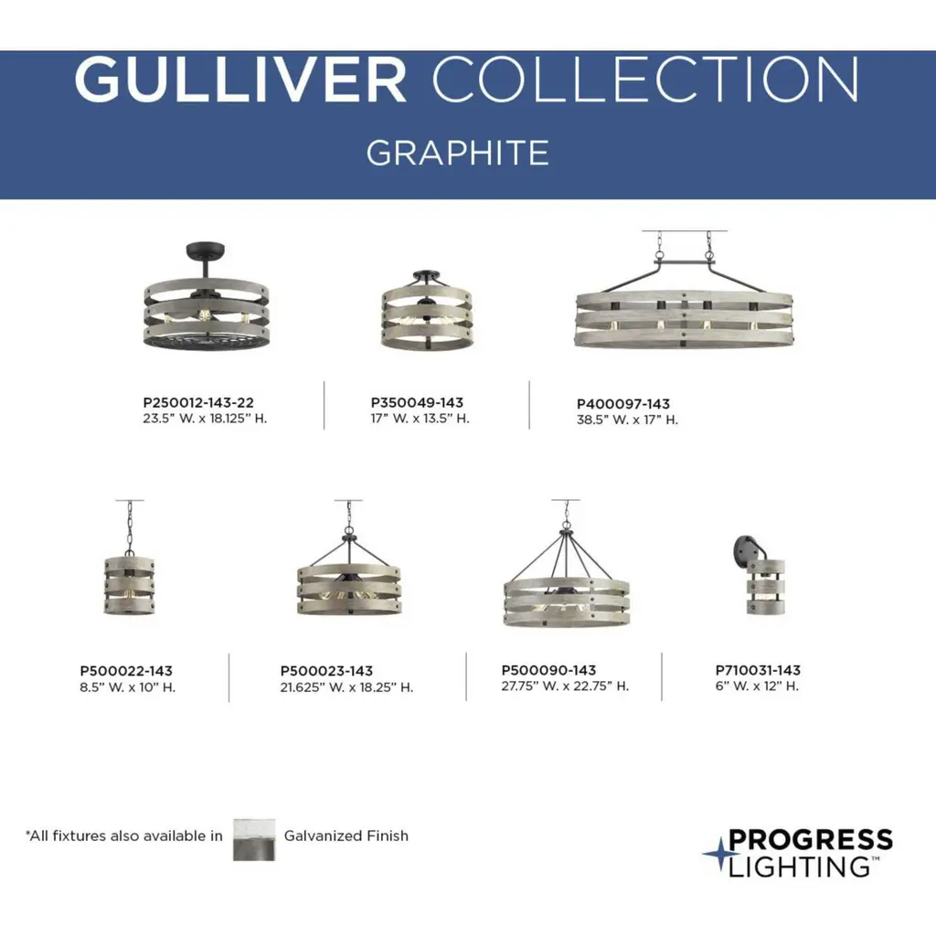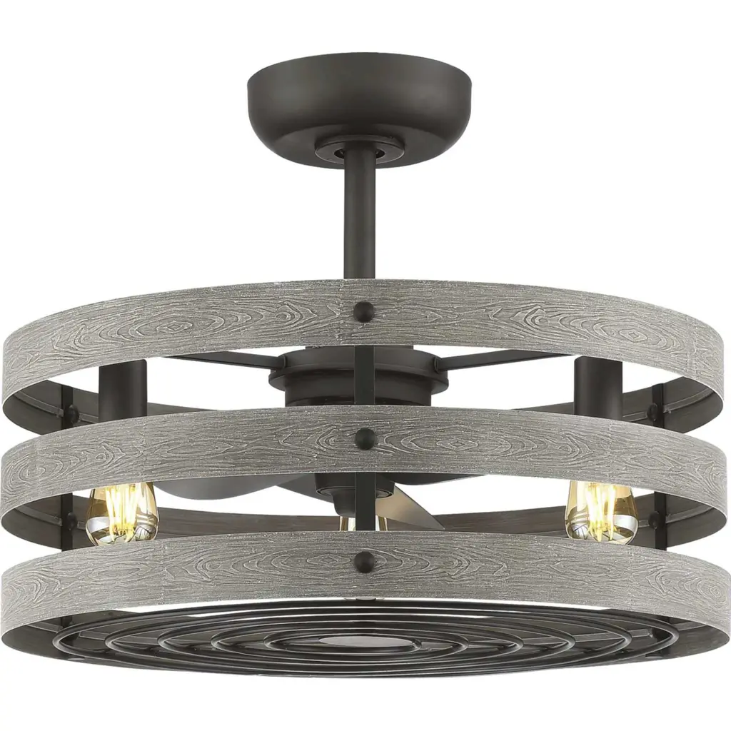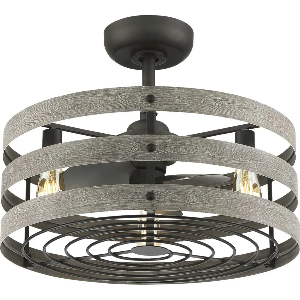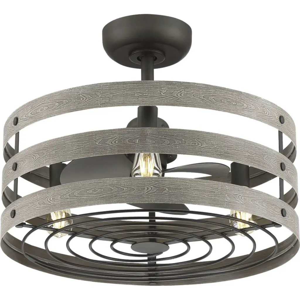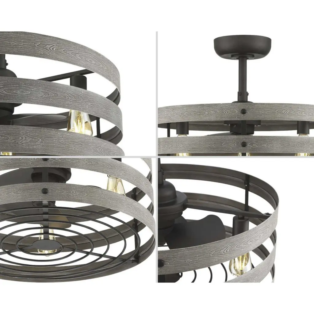 Freshen and revitalize your farmhouse or seaside home with the Gulliver ceiling fan. Three Gray Wood bands wrap together to create a statement-making, open-cage design that encloses the blades responsible for creating a reviving, fresh breeze.