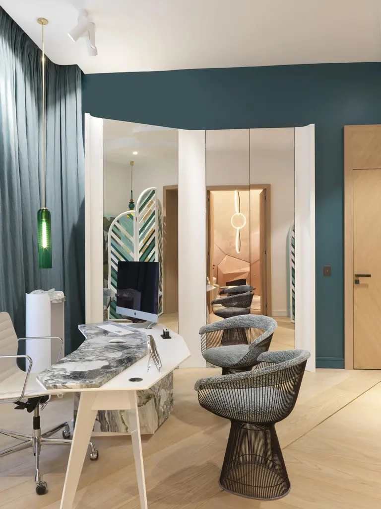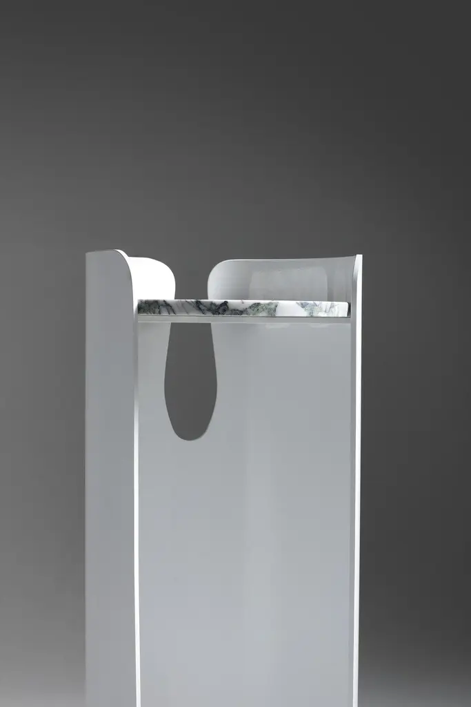 Memphis, France, Le Berre VevaudEmpreinte CollectionSteel leg, glossy white lacquered finishWhite beauty marble tray, polished finishFor their second collection, Raphaël Le Berre and Thomas Vevaud highlight the "savoir-faire" of French craftsmanship through unique furniture creations. Exceptional pieces to discover within a scenography entirely designed by the interior designer duet.This new collection summons stylistic references of the 1930s spirit and modernist currents at the antipodes of static and isolated furniture. It embodies a classic harmony anchored in reality and tinged with a warm and contemporary writing as to better weave a link between past and present.Made in textures that cultivate the opposites, sometimes objects of brutalist spirit but always precious, this edition is worked in a palette of amazing colors, acquired by a discourse of forms of an inspiring timelessness. A collection entirely produced in France.