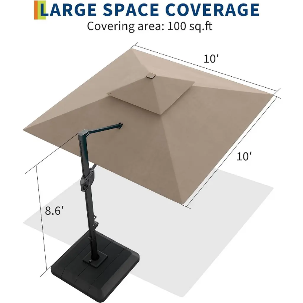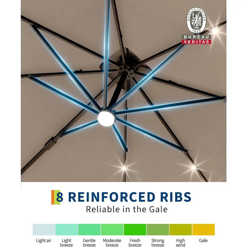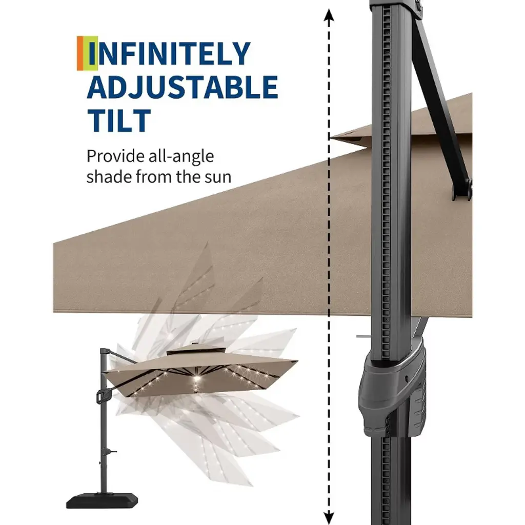 Gustowave 10' X 10' Patio Umbrella With Led Lights And Base For Garden, Tan