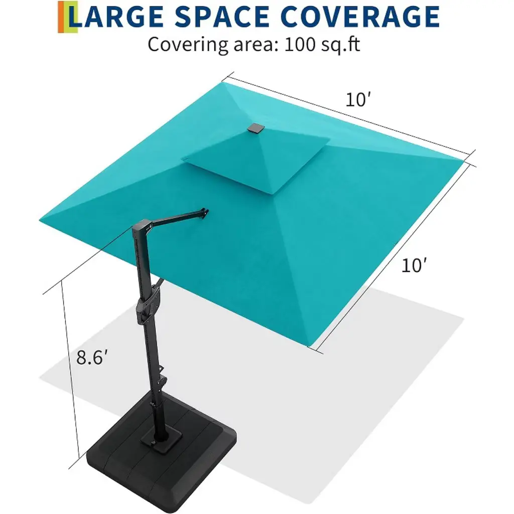 Gustowave 10' X 10' Patio Umbrella With Led Lights And Base For Garden, Turquoise