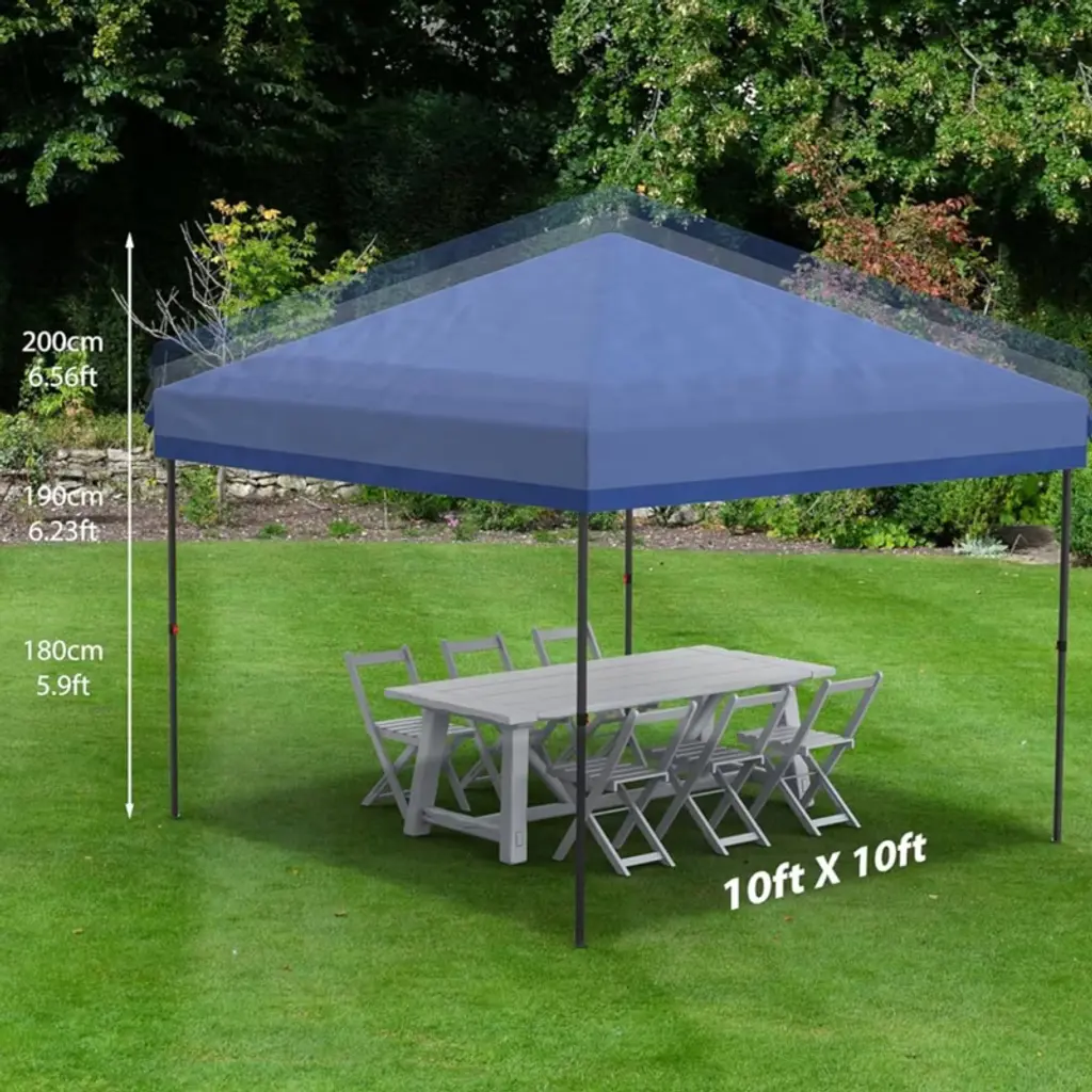 This 10x10ft pop-up canopy features tool-free setup with 3 height adjustments and 4 removable sidewalls, offering 100 sq.ft of UPF 50+ waterproof and flame-retardant shade with a rust-resistant steel frame¡ªperfect for events, camping, beaches, and outdoor adventures.