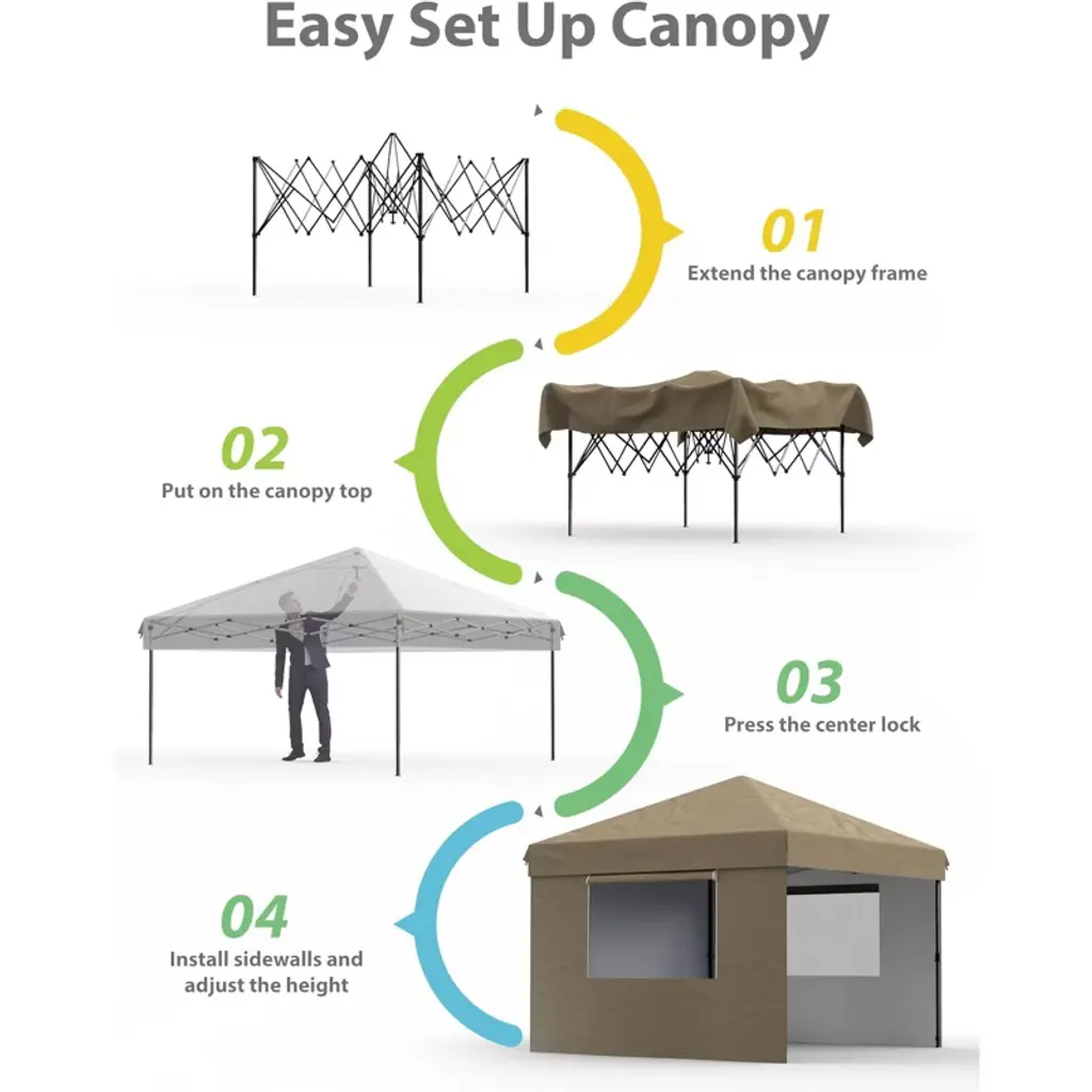 This 10x10ft pop-up canopy features tool-free setup with 3 height adjustments and 4 removable sidewalls, offering 100 sq.ft of UPF 50+ waterproof and flame-retardant shade with a rust-resistant steel frame¡ªperfect for events, camping, beaches, and outdoor adventures.
