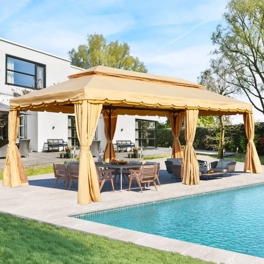Gustowave 10' X 13' Heavy Duty Hardtop Patio Gazebo For Garden, Patios, Lawns, Khaki