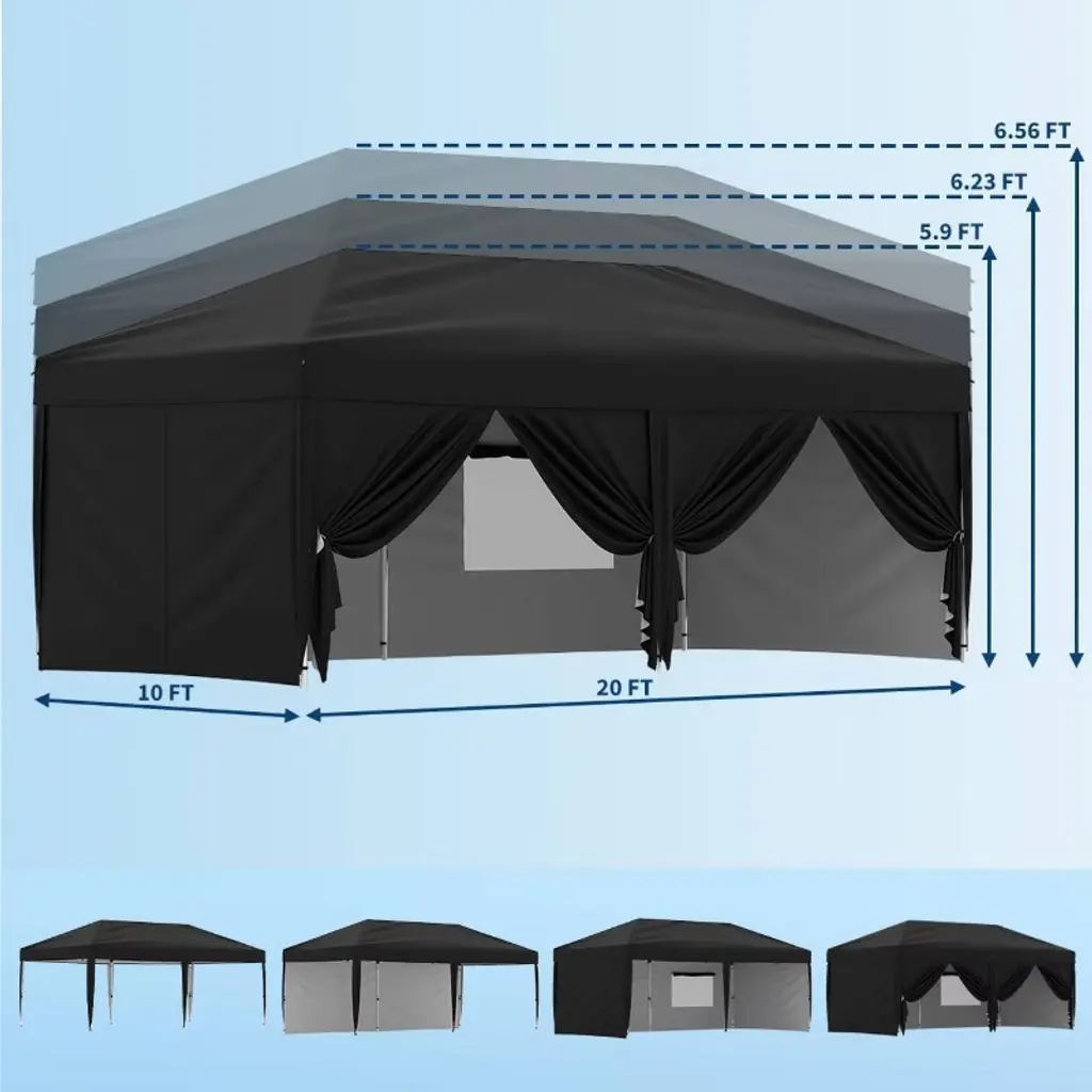 Gustowave 10 X 20ft Pop-up Canopy With 6 Removable Sidewalls For Camping, Black