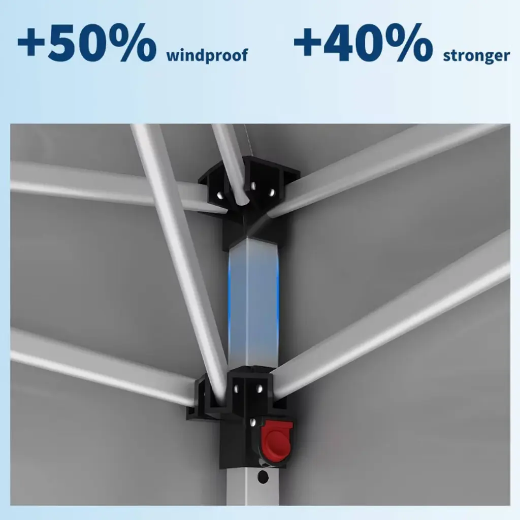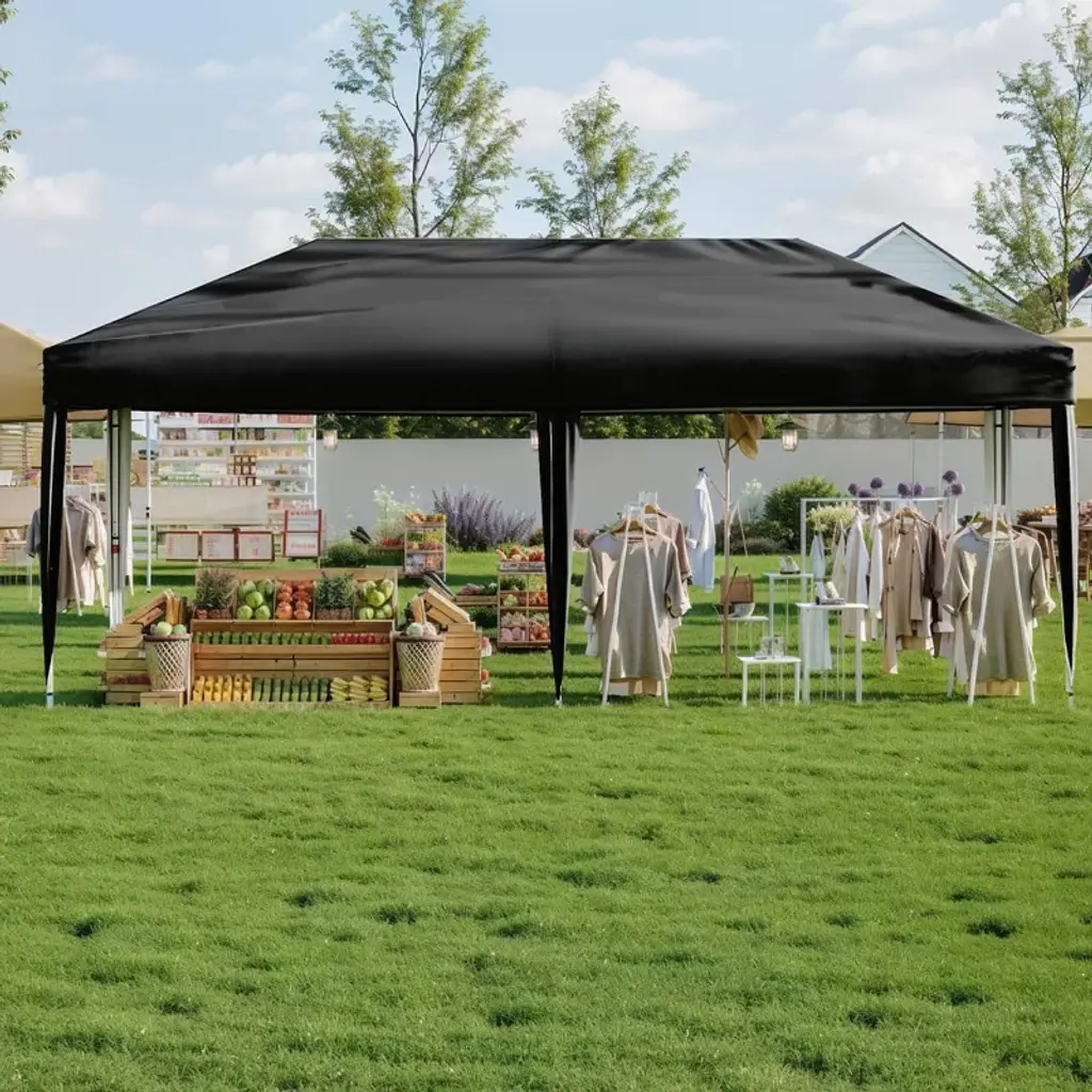 This heavy-duty 10x20 pop-up canopy offers one-person instant setup with adjustable heights, providing 200 sq ft of UPF 50+ waterproof shade with 6 removable sidewalls, a rust-proof steel frame for 30 mph wind resistance, and versatile use for events, camping, or vending.