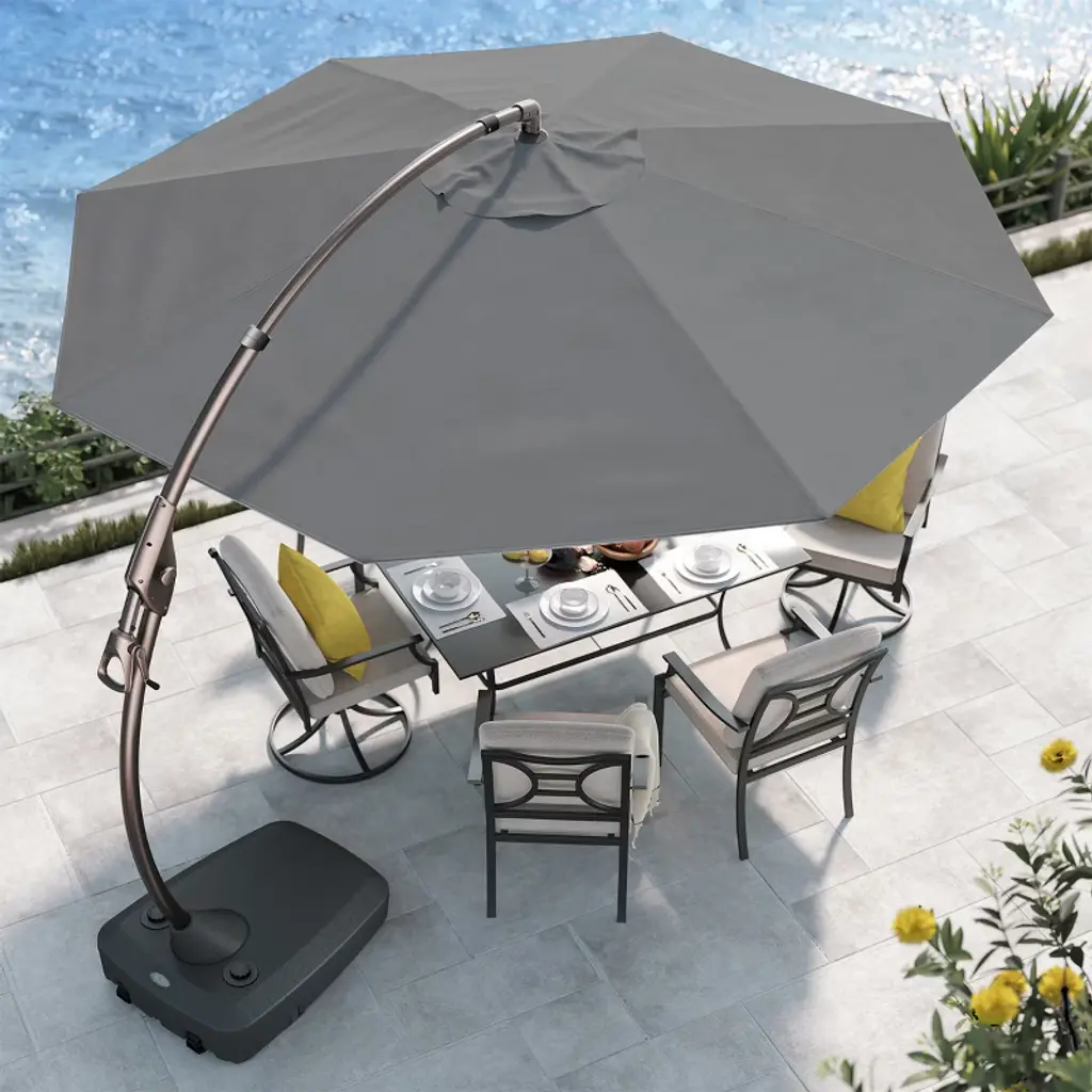 Gustowave 10ft Cantilever Patio Umbrella With Cross Base, Grey