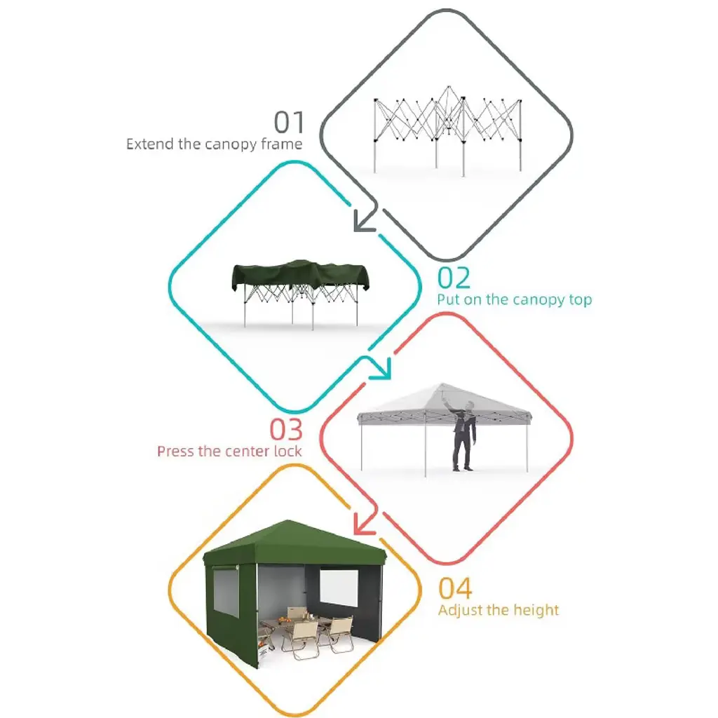 Gustowave 10x10 Ft Pop Up Canopy With 4 Sidewalls For Deck, Garden, Green