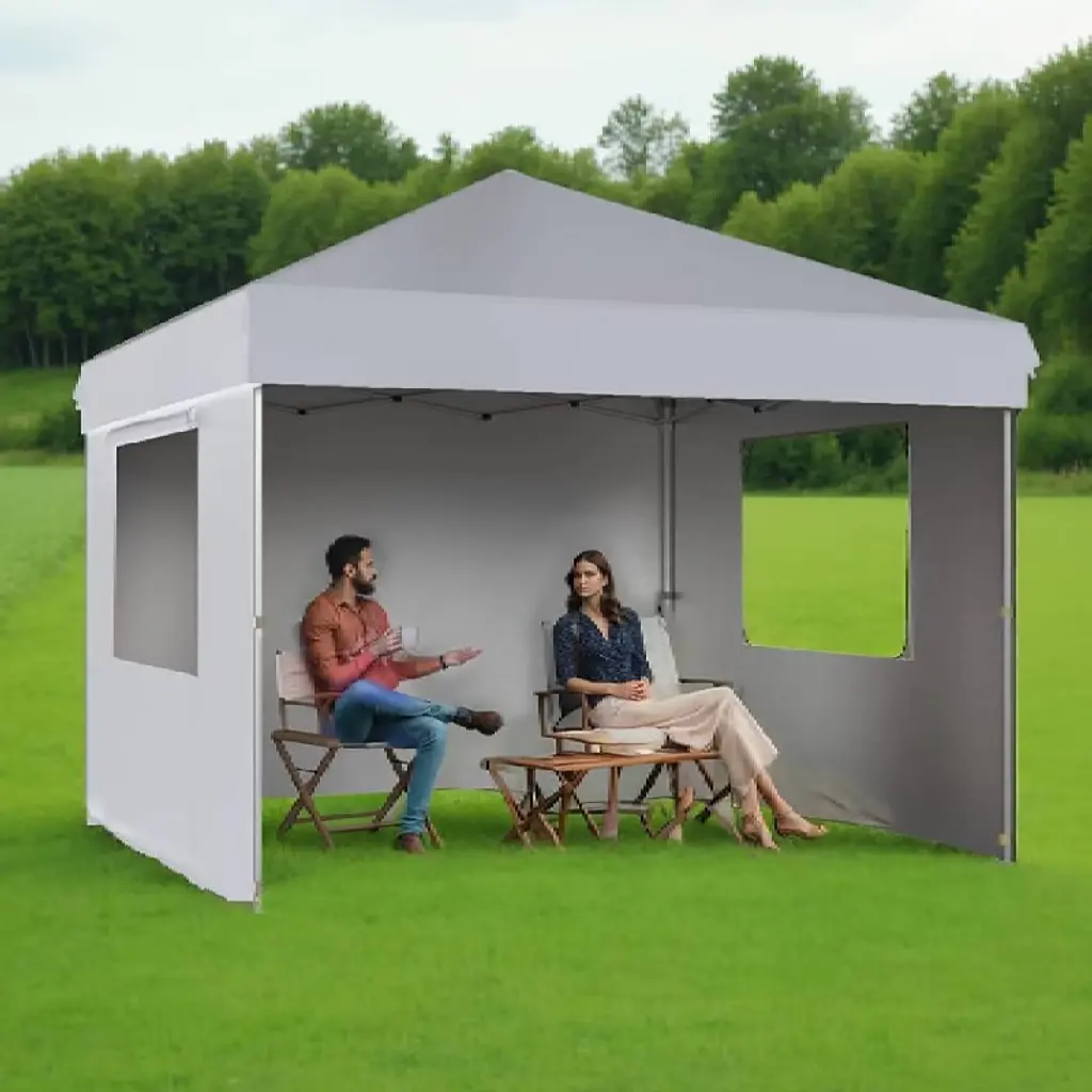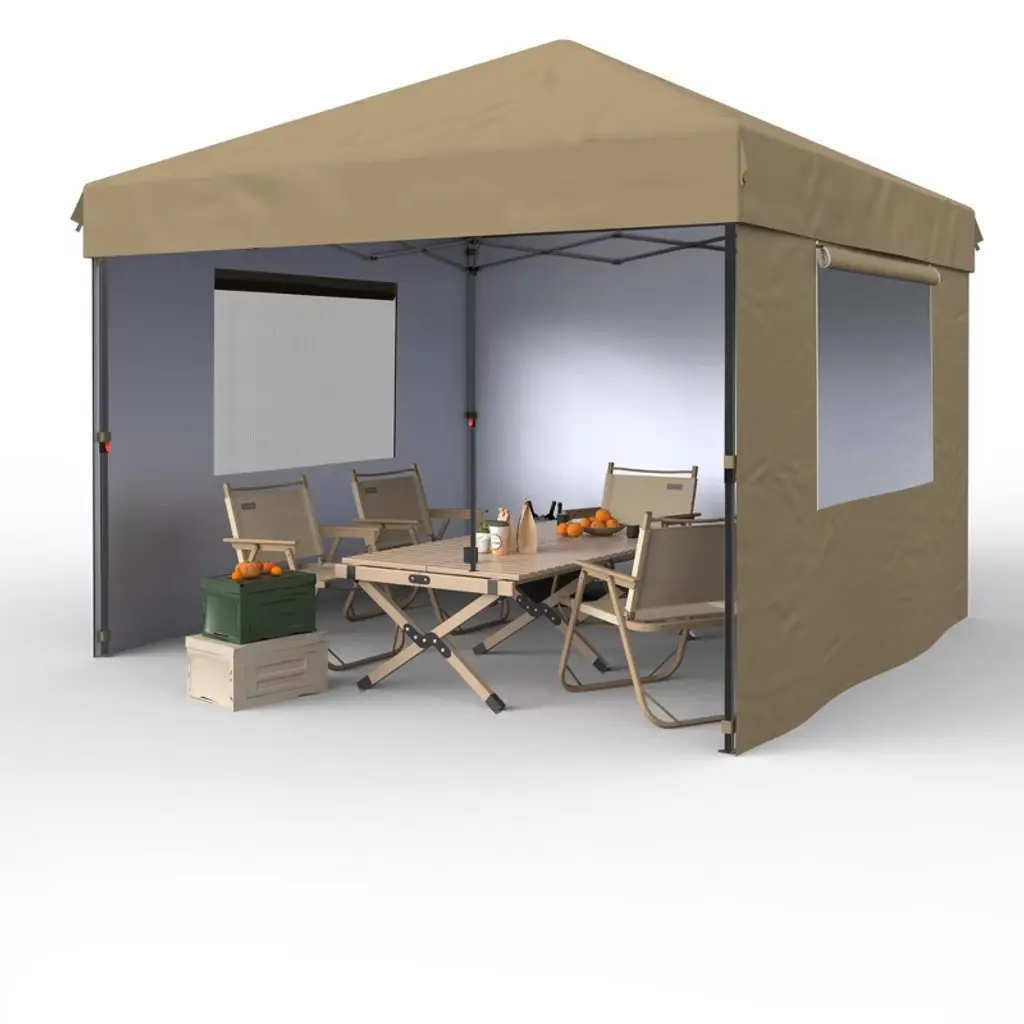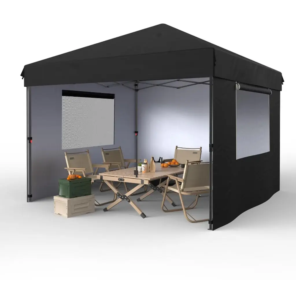 Gustowave 10x10 Ft Pop Up Canopy With 4 Sidewalls For Deck, Garden, Grey