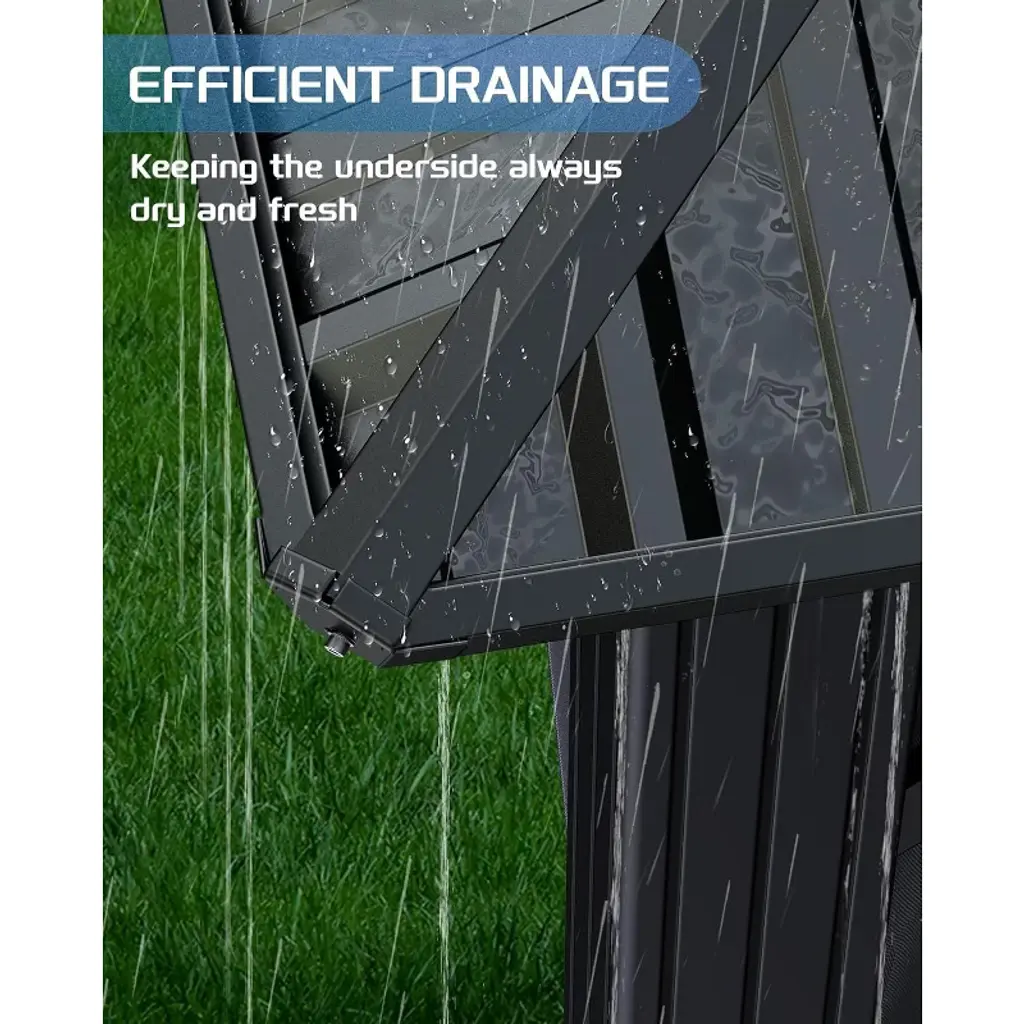 This durable gazebo features a double-layer metal roof, reinforced steel poles, and an aerospace-grade aluminum frame with triple anti-rust coating, designed to withstand extreme weather. It offers easy installation with pre-drilled holes, a versatile 3-in-1 modular shield system for privacy and comfort, and an elegant, ventilated design ideal for various outdoor living spaces.