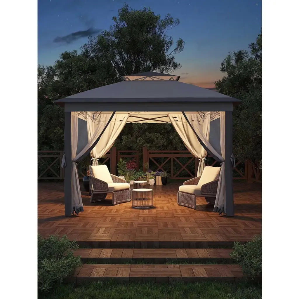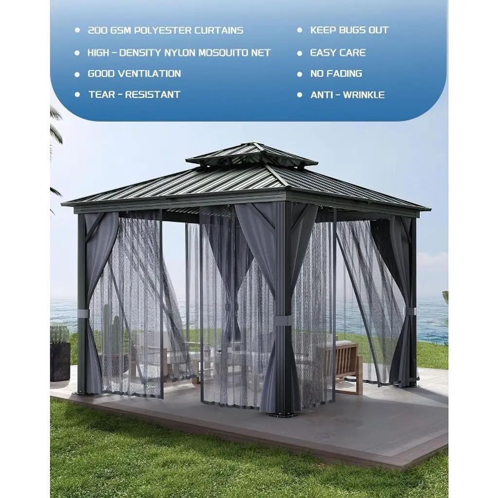 Gustowave 10'x10' Outdoor Double Hardtop Patio Gazebo For Deck, Backyard, Lawn, Garden, Grey