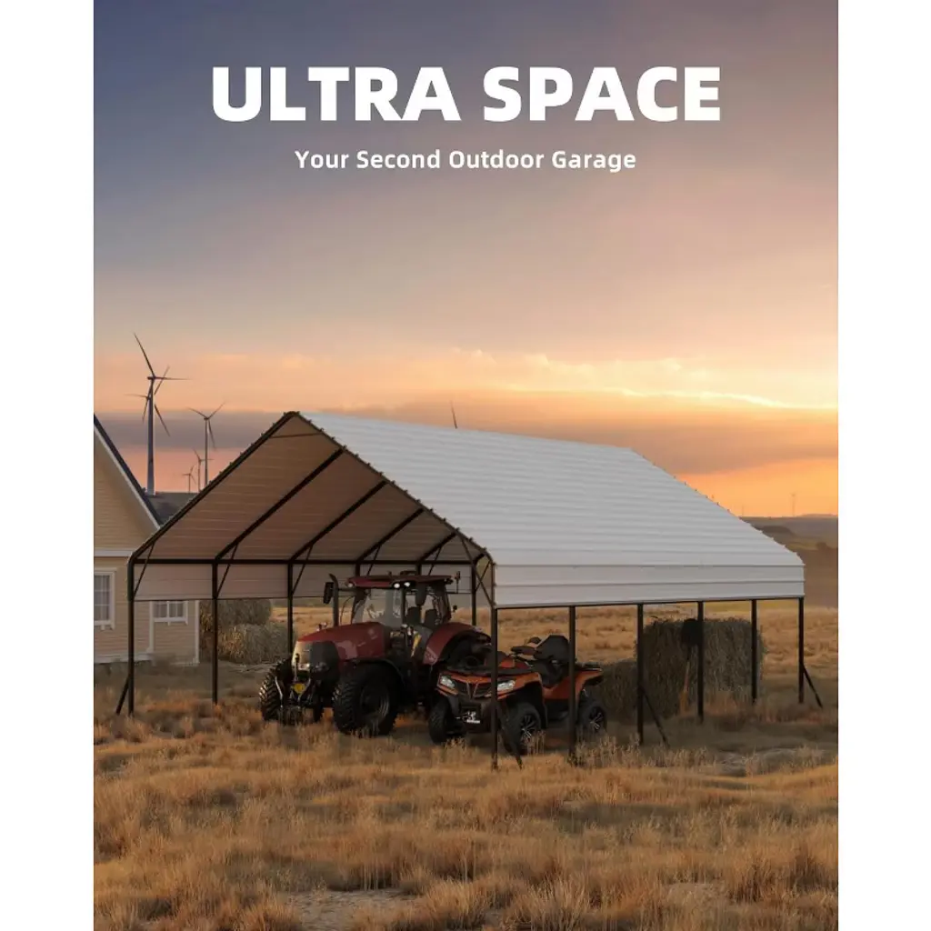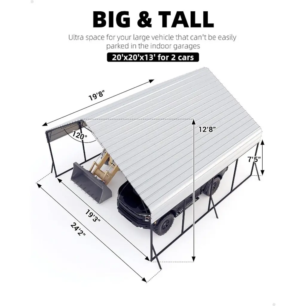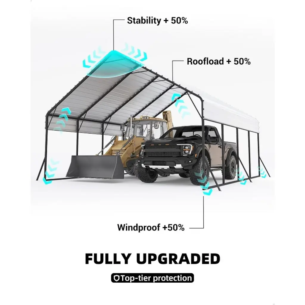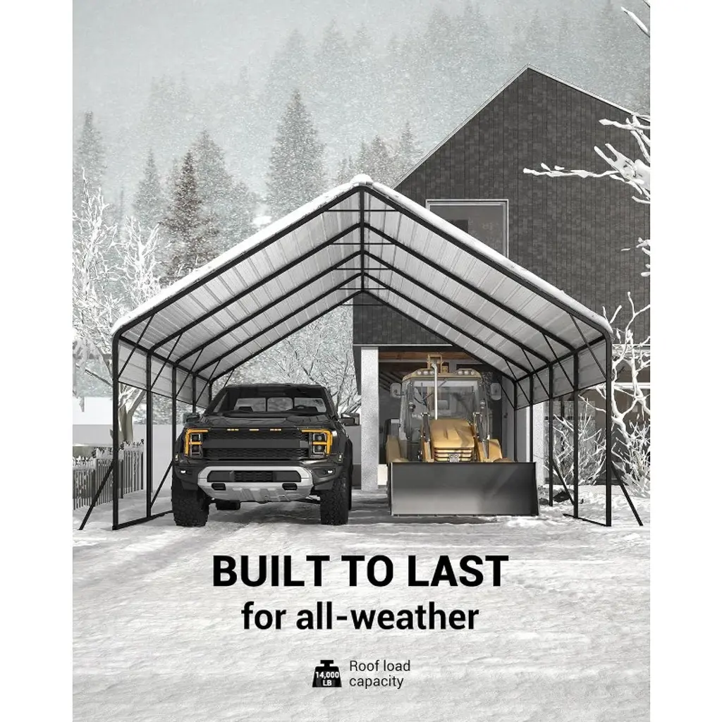 Gustowave 20'x20' Heavy Duty Steel Carport For All Weather Sedans, Bass Boats, Motos, Atvs, And Suvs