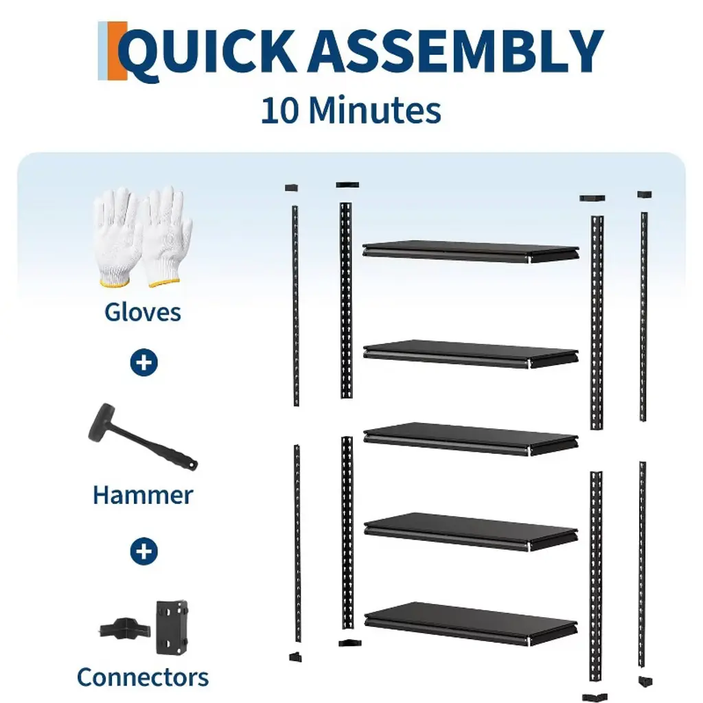 Gustowave 5-tier Adjustable Utility Storage Rack Shelves For Warehouse, Pantry, Kitchen, Workshop