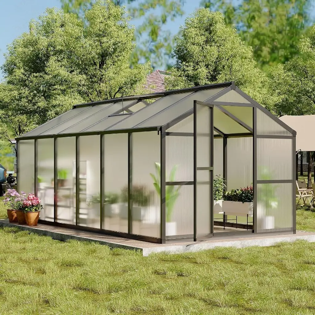 Gustowave 6X10 Ft Walk-in Polycarbonate Greenhouse With Aluminum Frame, Black.