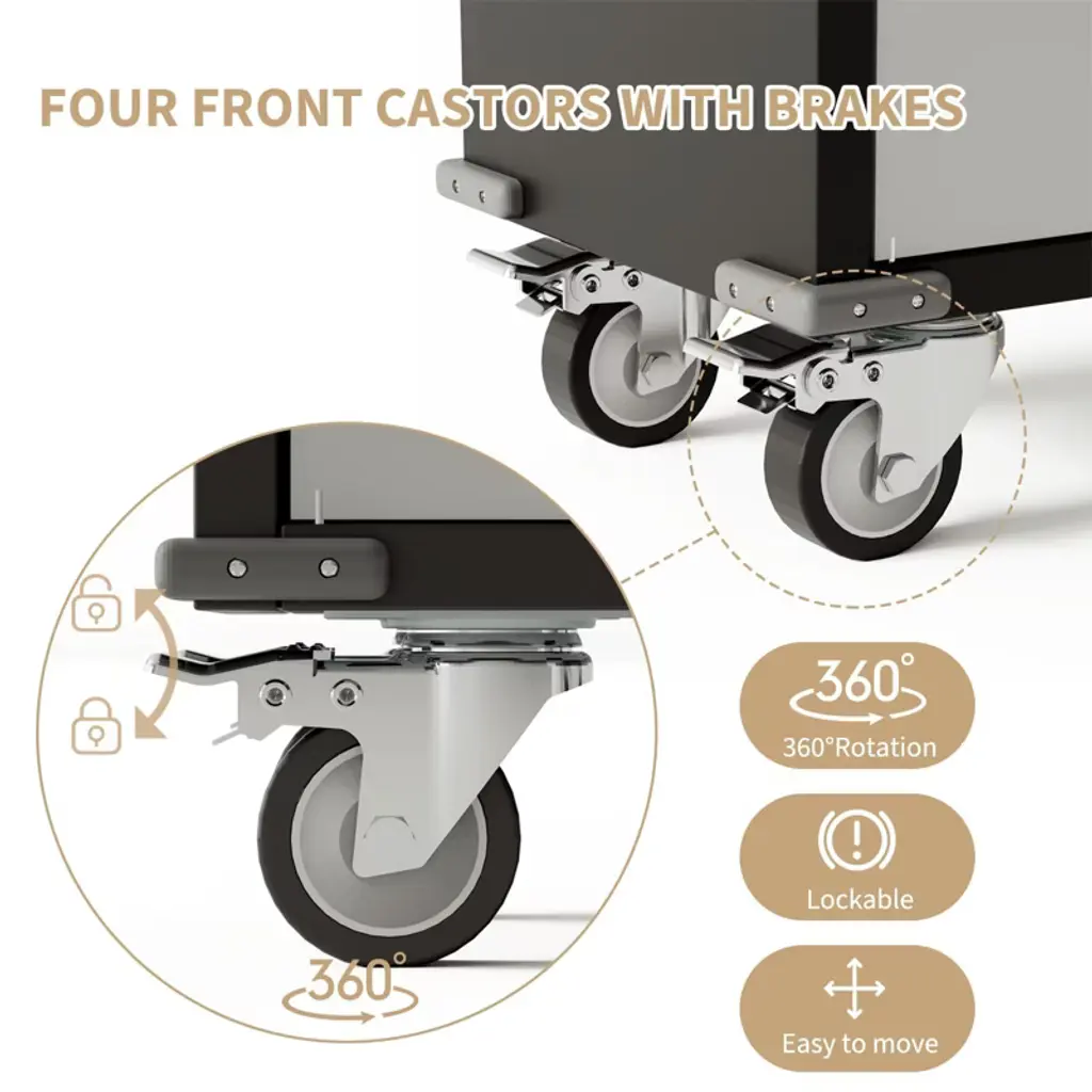 This heavy-duty 71.7" steel cabinet delivers robust storage for garages, workshops, or offices. Reinforced metal construction supports substantial weight while adjustable shelves and compartments enable versatile tool organization. A secure mechanical locking system safeguards valuables in shared spaces. Four smooth-rolling wheels and stabilizing feet allow effortless repositioning across uneven surfaces, locking securely in place. Combining industrial durability with functional mobility, its streamlined design maximizes workspace efficiency without sacrificing accessibility. Ideal for heavy equipment or document storage, it transitions seamlessly between professional and home environments, providing lasting security and clutter-free organization in a single resilient unit.