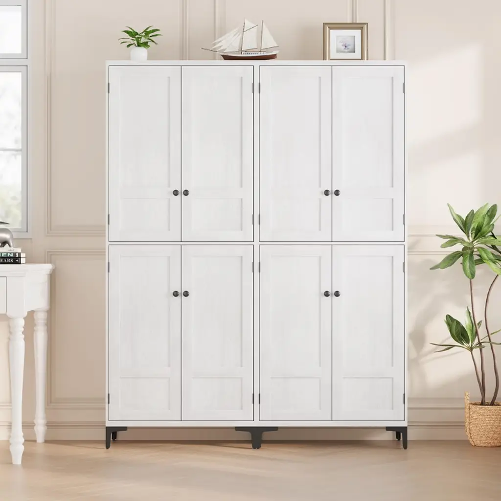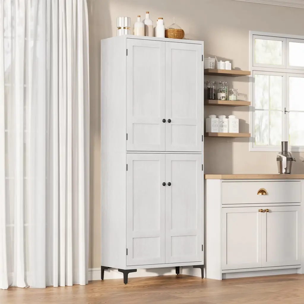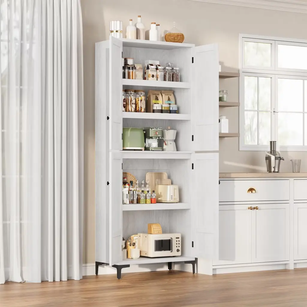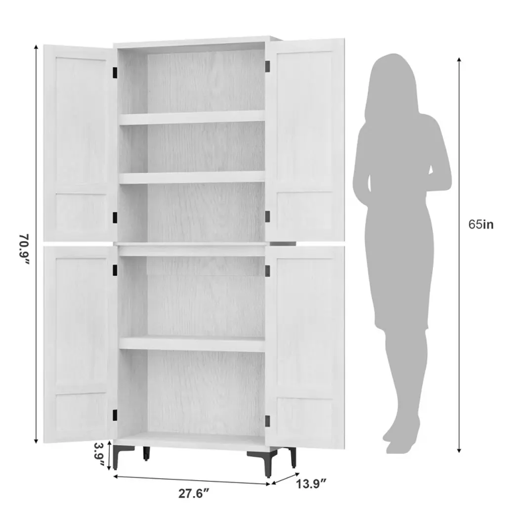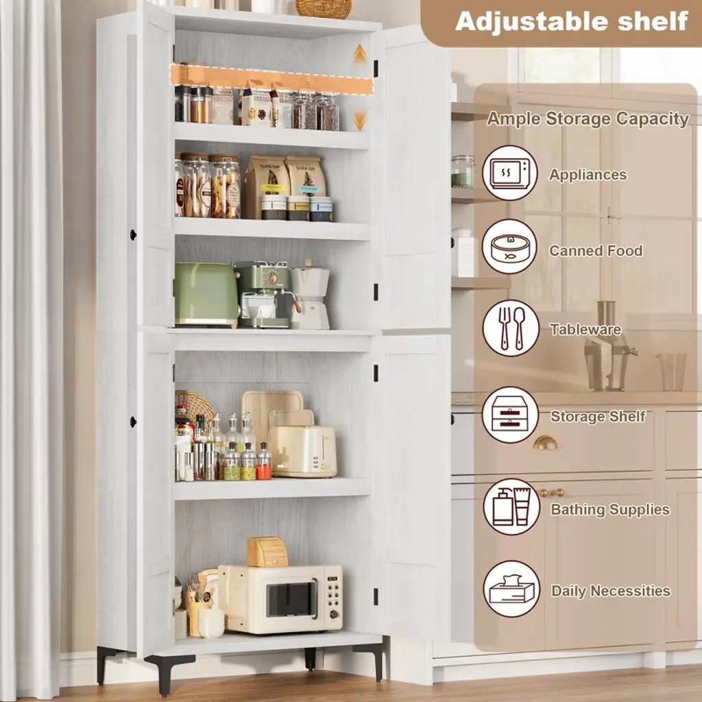 Gustowave 71 Inch Tall Storage Cabinet, Kitchen Pantry 5 Tier Bathroom Cabinet With 4 Doors Adjustable Shelves For Bathroom (White-4 Door With Mdf)