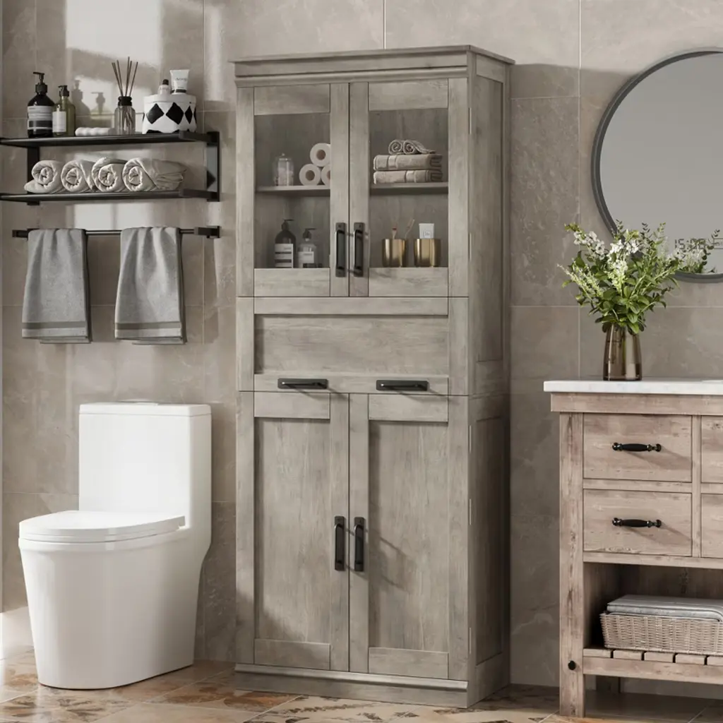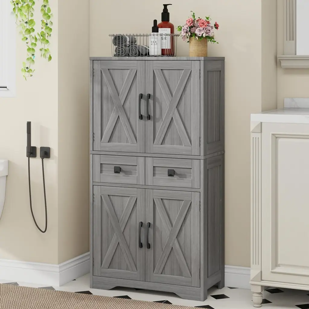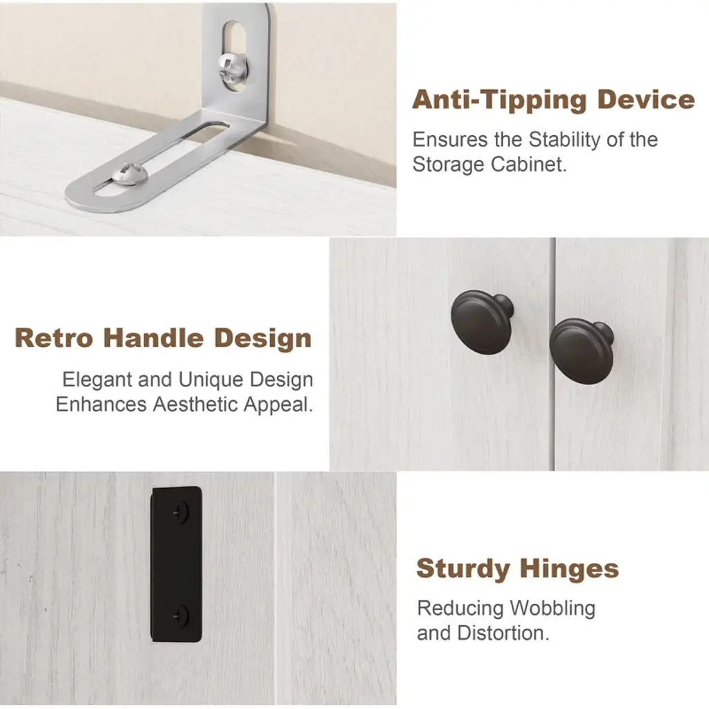 This farmhouse storage organizer serves as a bathroom cabinet, pantry storage, accent cabinet, or garage and office cabinet. Its versatile design enhances organization throughout your home, making it a practical addition to any room.