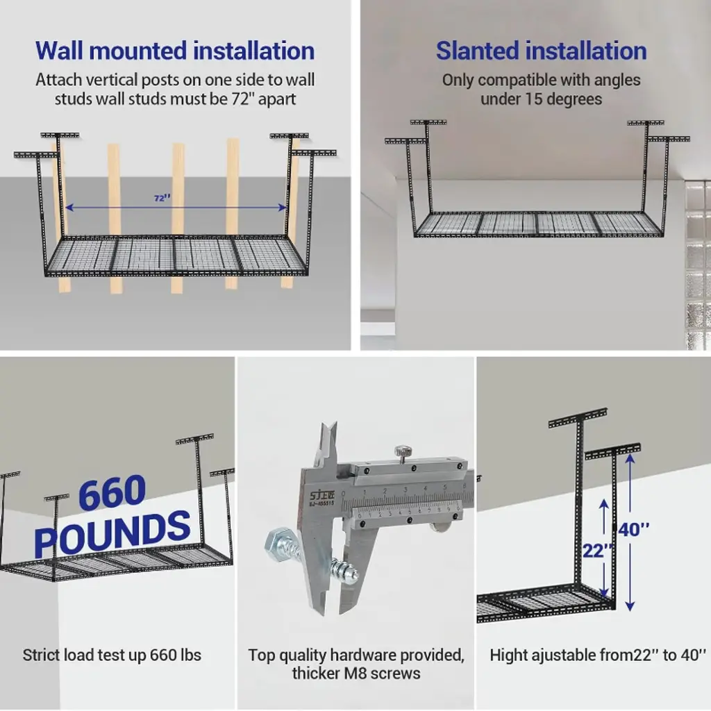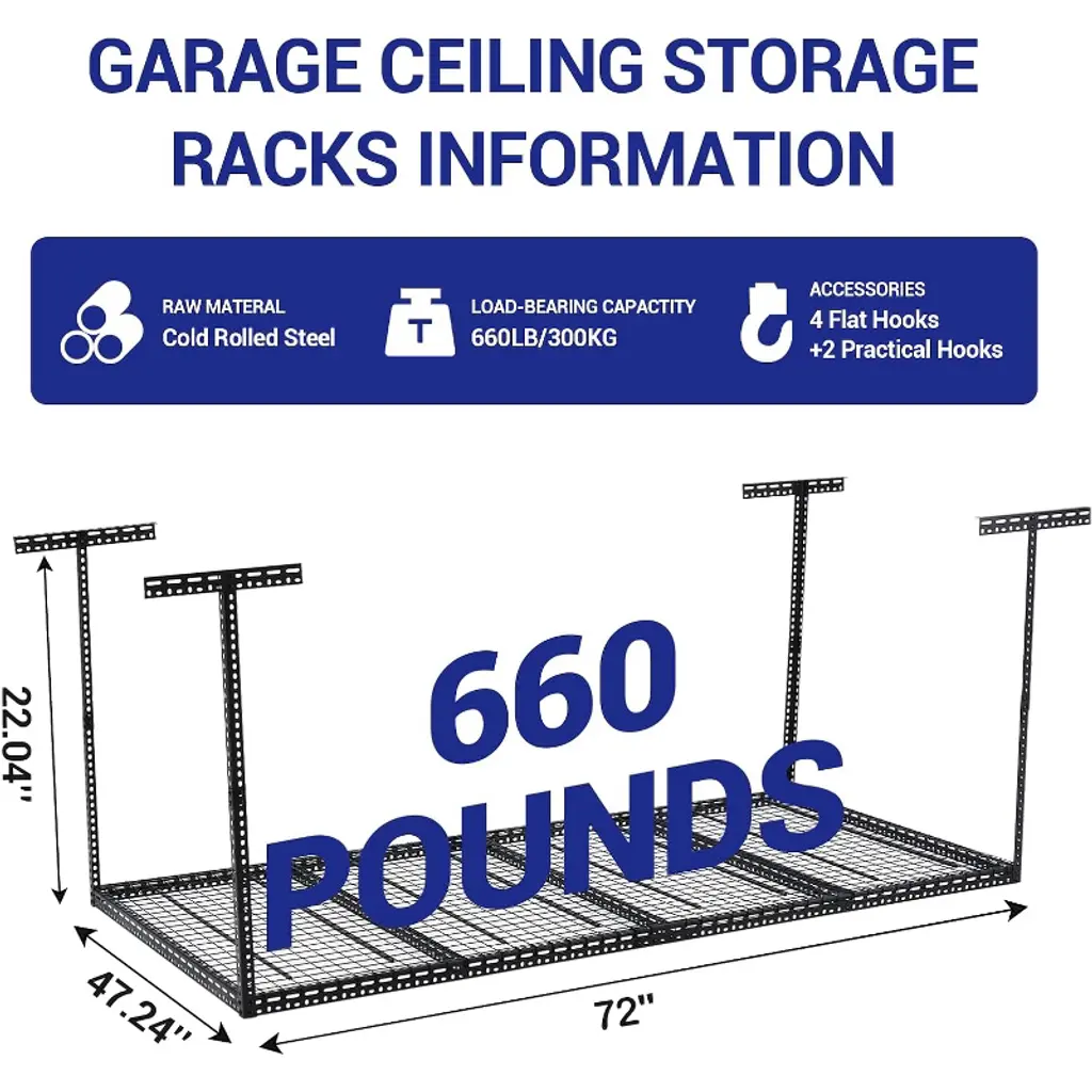 Overhead Garage Storage is the ultimate solution for maximizing space and organizing your garage efficiently. Designed to utilize the often-overlooked area above your head, this innovative storage system helps clear clutter from the floor, making room for vehicles and other essential items. Crafted from durable materials, the overhead storage racks are built to support heavy loads, providing a safe and reliable way to store seasonal items, sporting equipment, tools, and more.