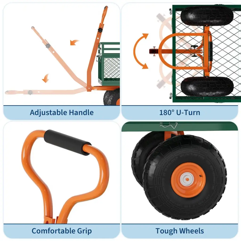 Gustowave Heavy Duty Steel Garden Cart Wagon, 1200 Lb Capacity 3-in-1 Convertible Yard Cart With 10" All-terrain Wheels, For Soil, Mulch, Tools