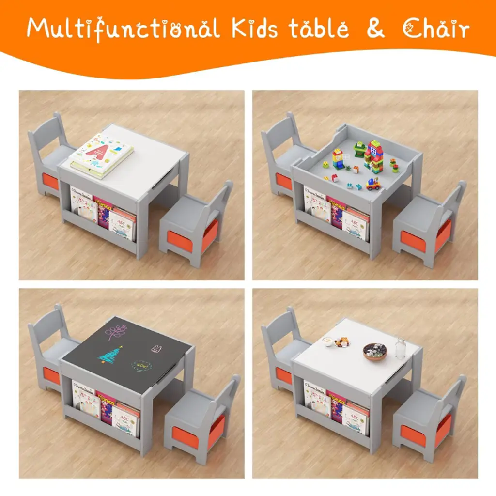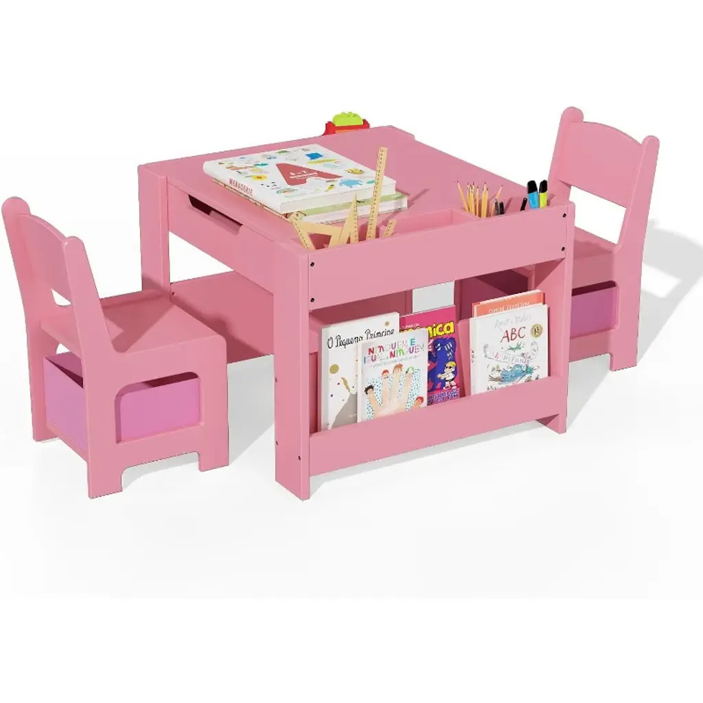 Gustowave Kids Art Table And Chair Set,3 In 1 Activity Table With 2 Chairs, Toddlers Craf