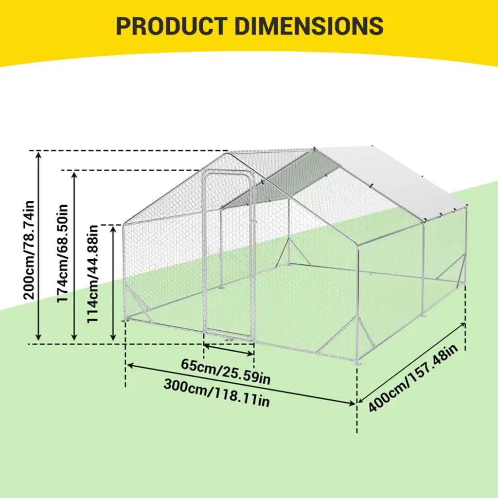 Gustowave Large Metal Chicken Coop, 9.8 X 13.1 X 6.6 Ft Walk In Poultry Cage Chicken Run Pen With Waterproof & Anti-ultraviolet Cover