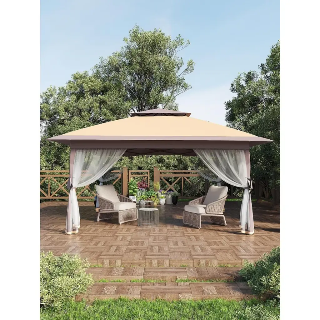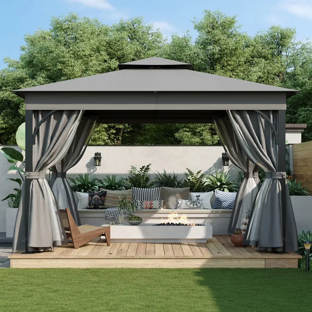 This 12x12 pop-up gazebo features a durable steel frame, UPF 50+ waterproof canopy, spacious 144 sq. ft. shaded area, removable mosquito net walls, and effortless setup, making it ideal for outdoor gatherings, patios, and poolside parties.