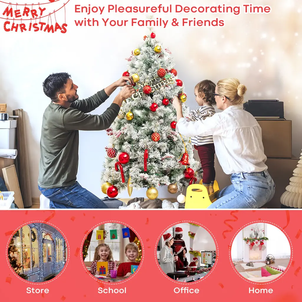 Gymax 4.5 Ft Pre-Lit Artificial Christmas Tree Snow-Flocked Hinged - 4.5 Foot