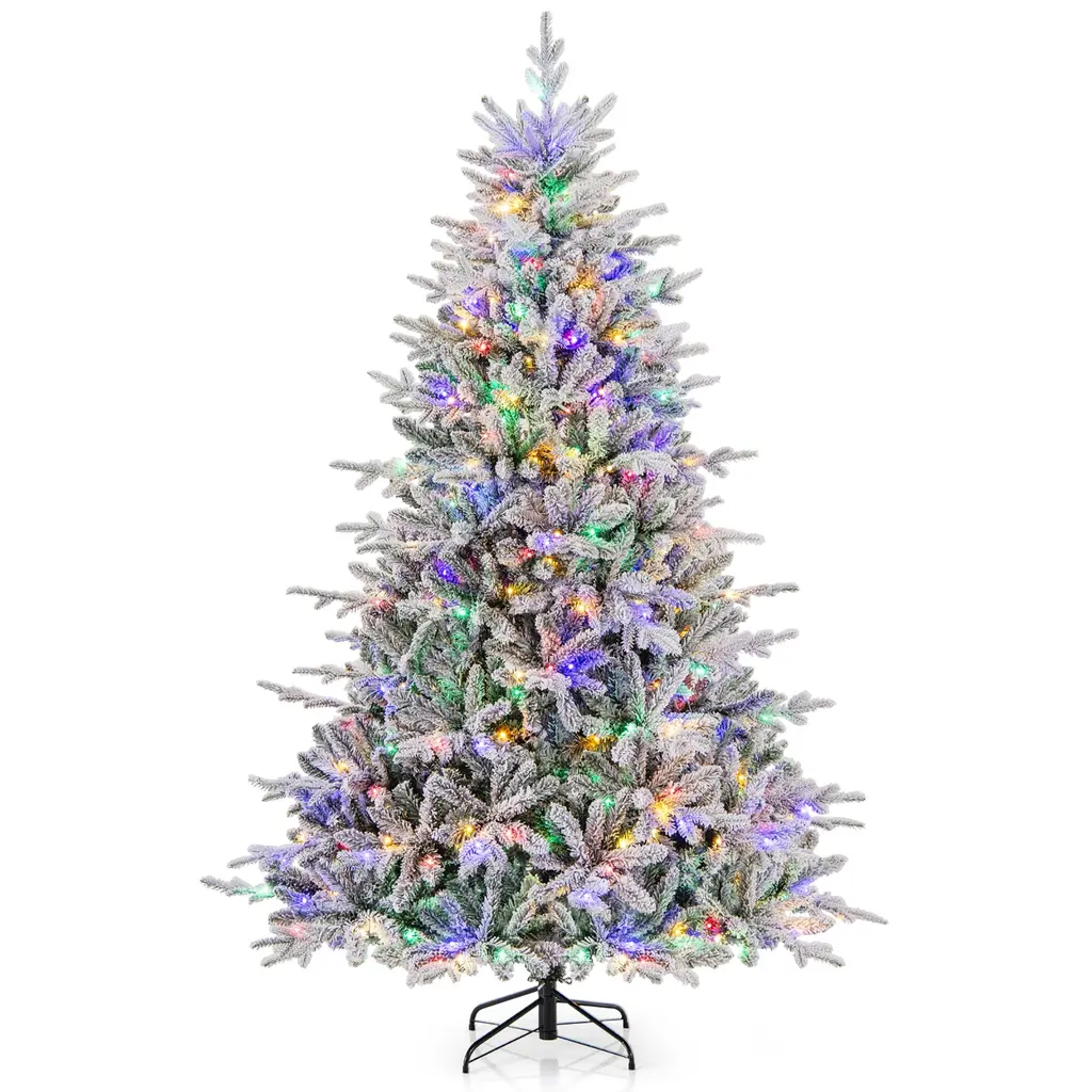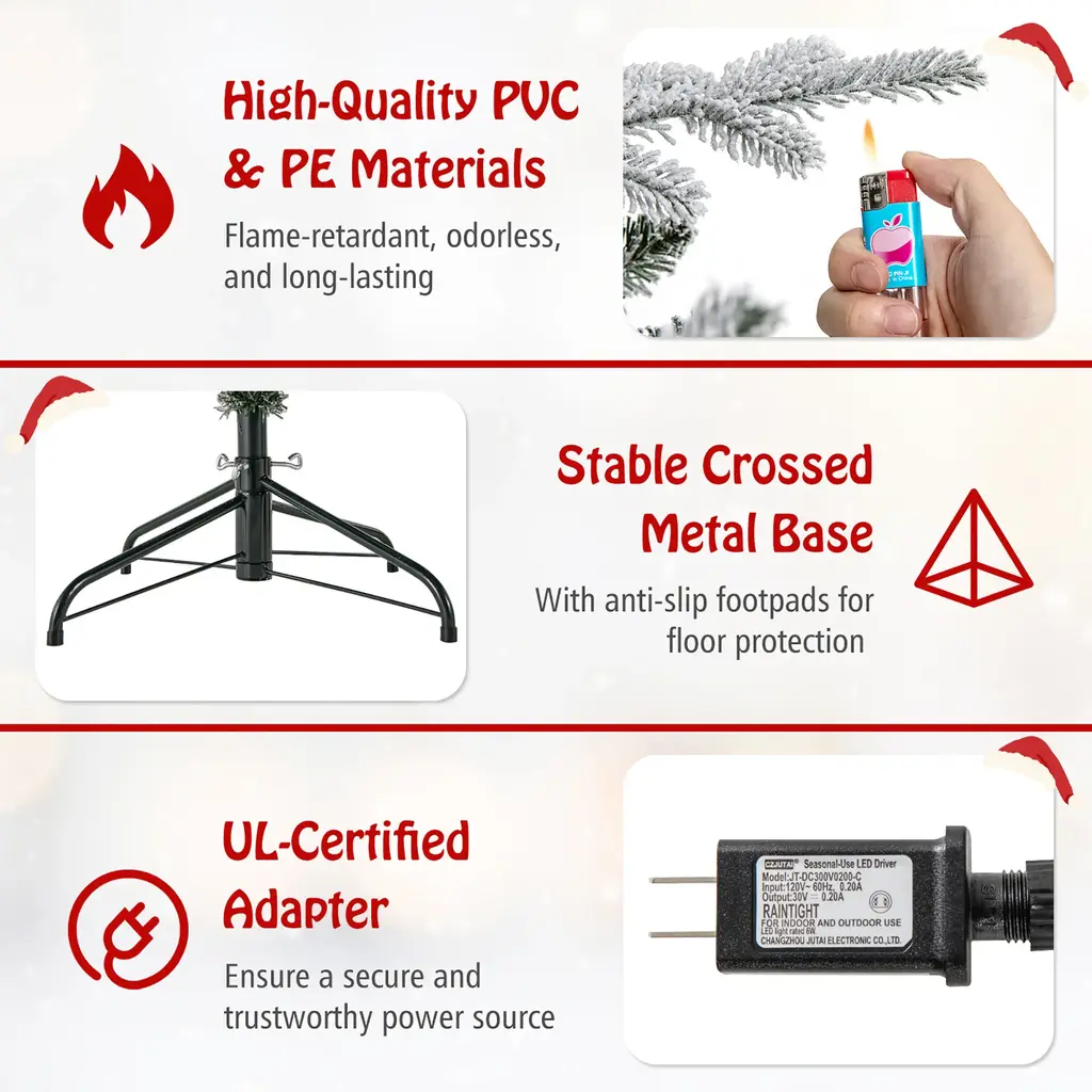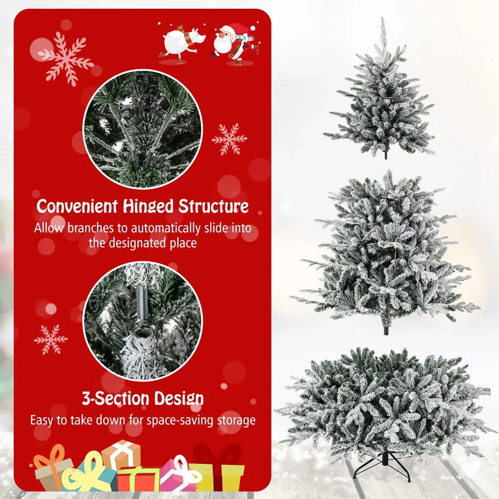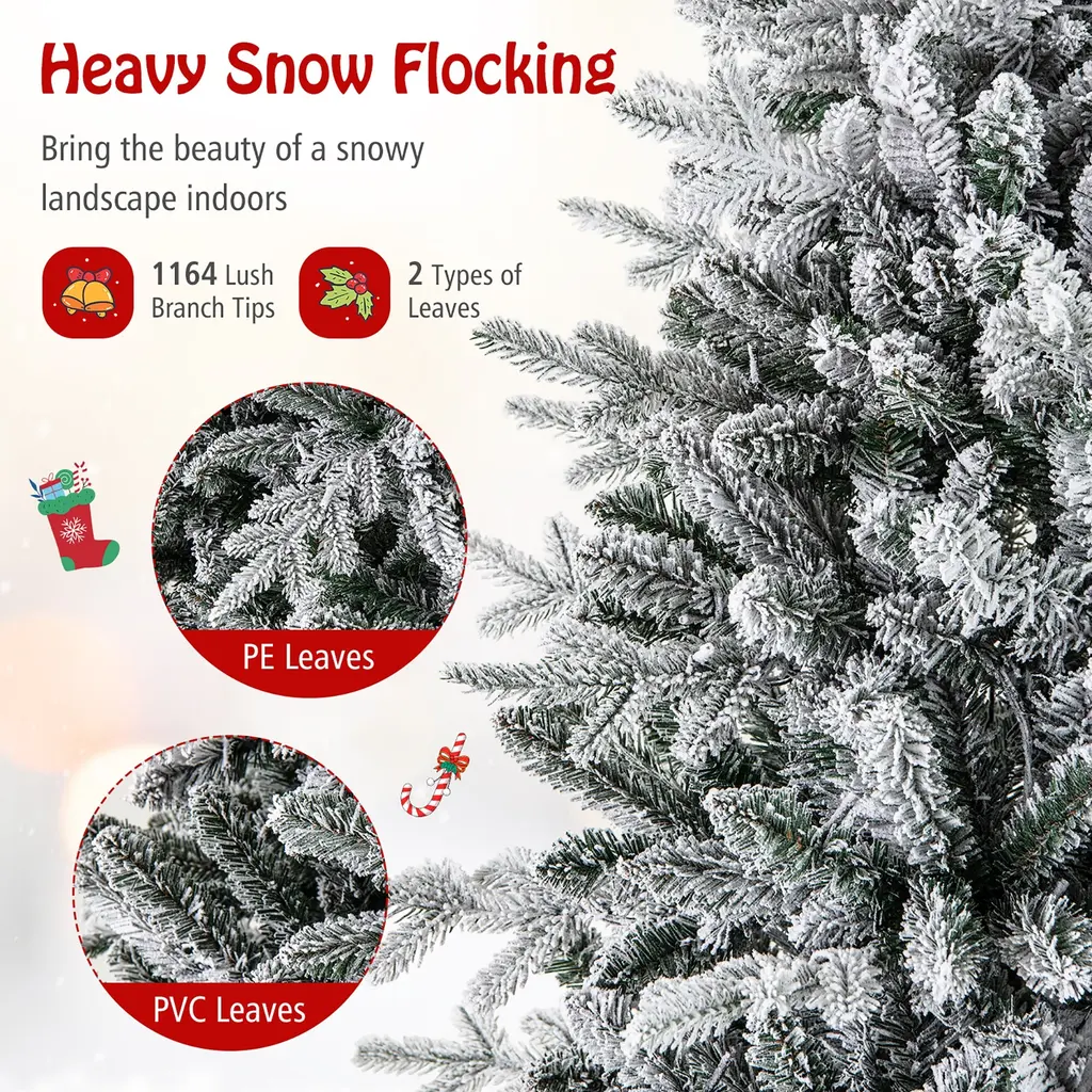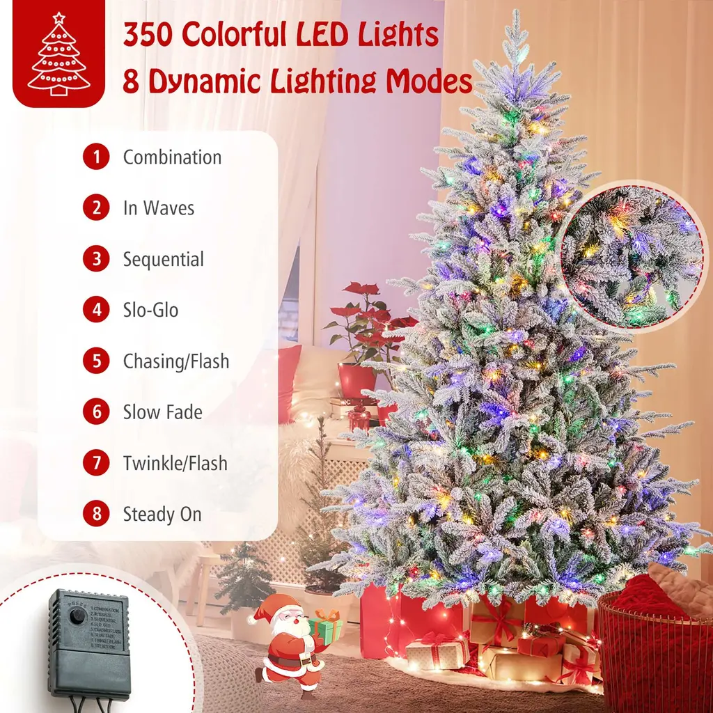 Gymax 4.5/6/7 Ft Pre-Lit Artificial Christmas Tree Snow Flocked Full - 7 Foot
