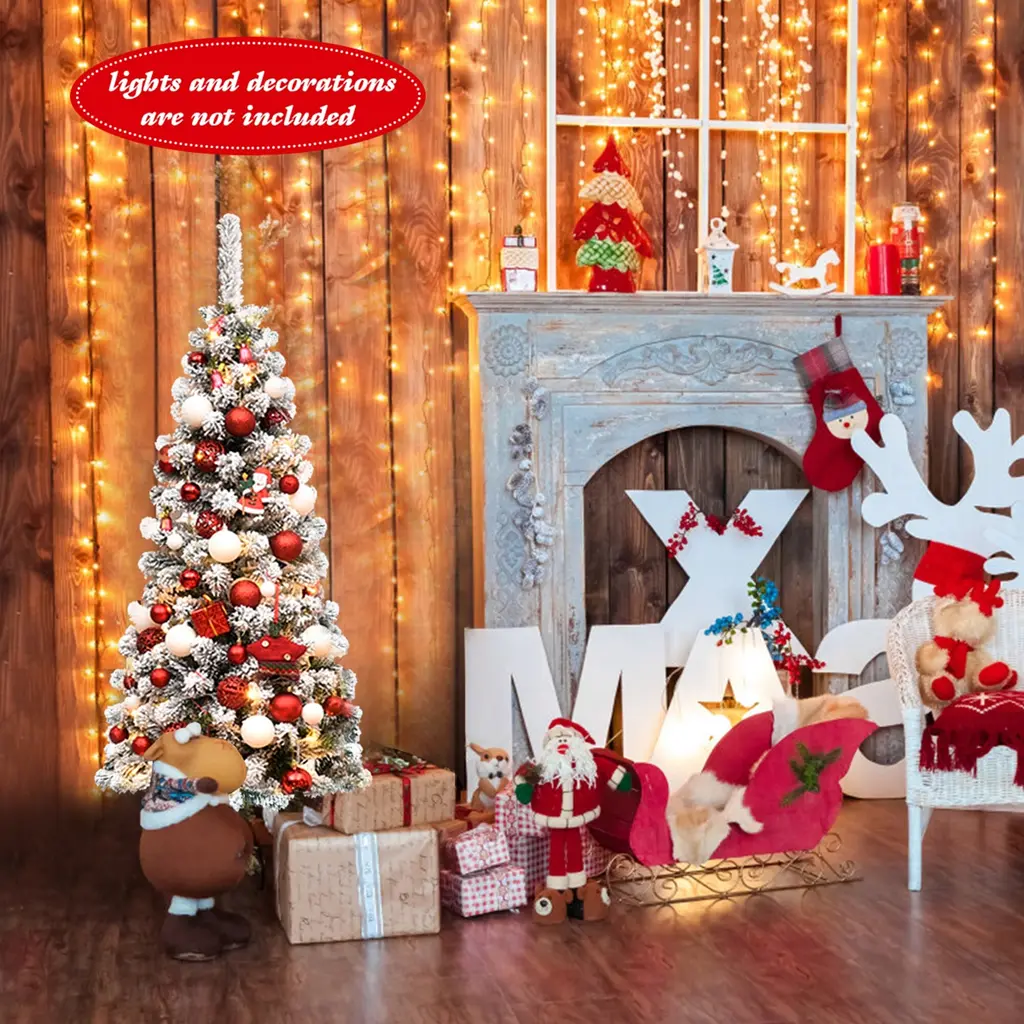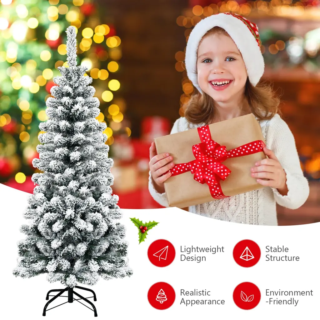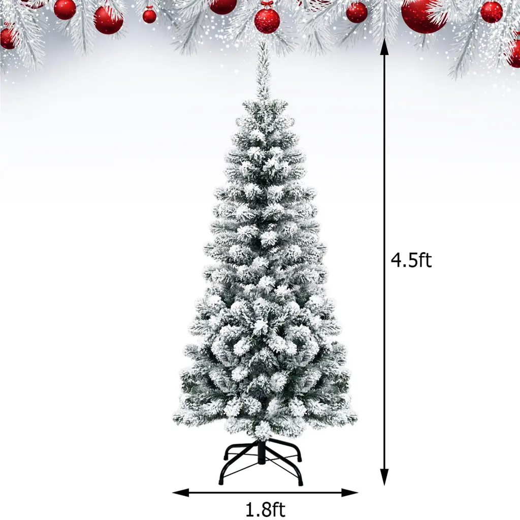 Gymax 4.5ft Snow Flocked Pencil Christmas Tree Artificial Pine Tree W/ - See Details - Multi - 4.5 Foot