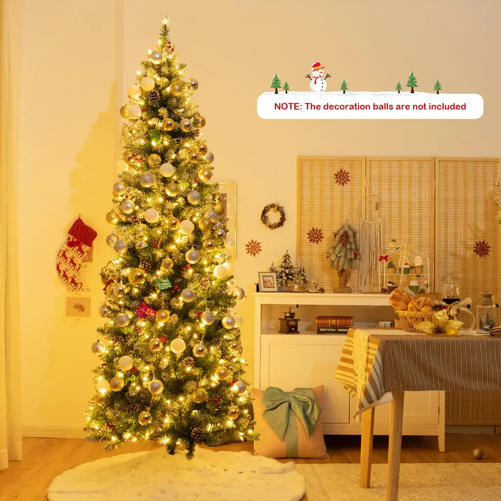 Gymax 5/6/7 Ft Pre-Lit Hinged Christmas Tree Artificial Pencil Xmas - 7 Foot
