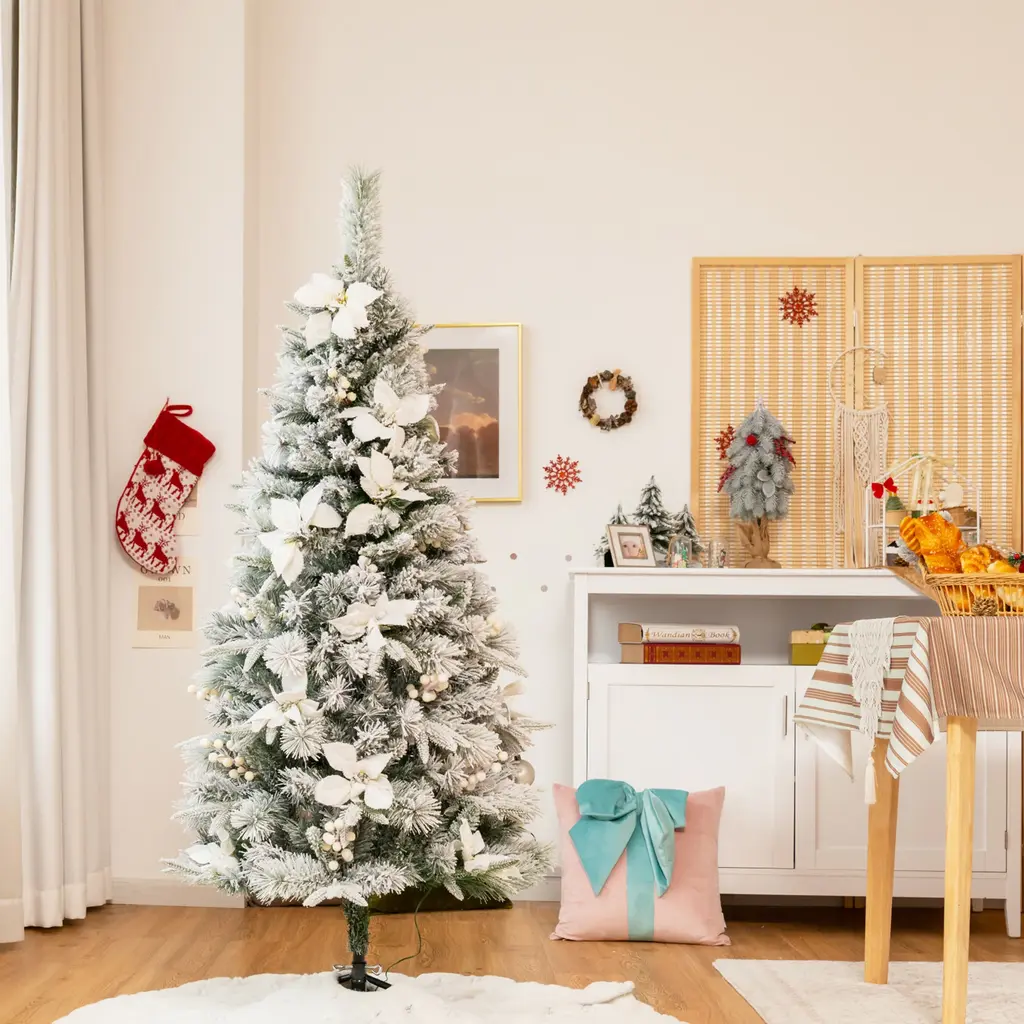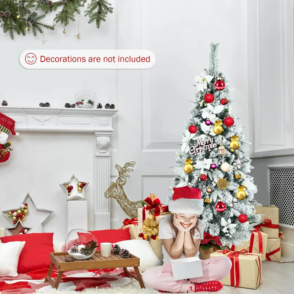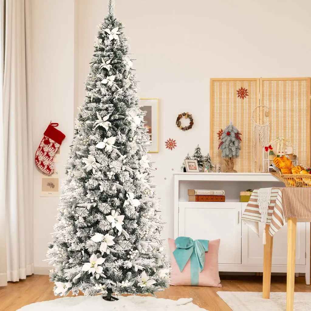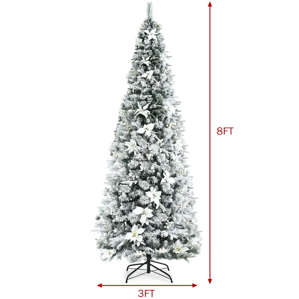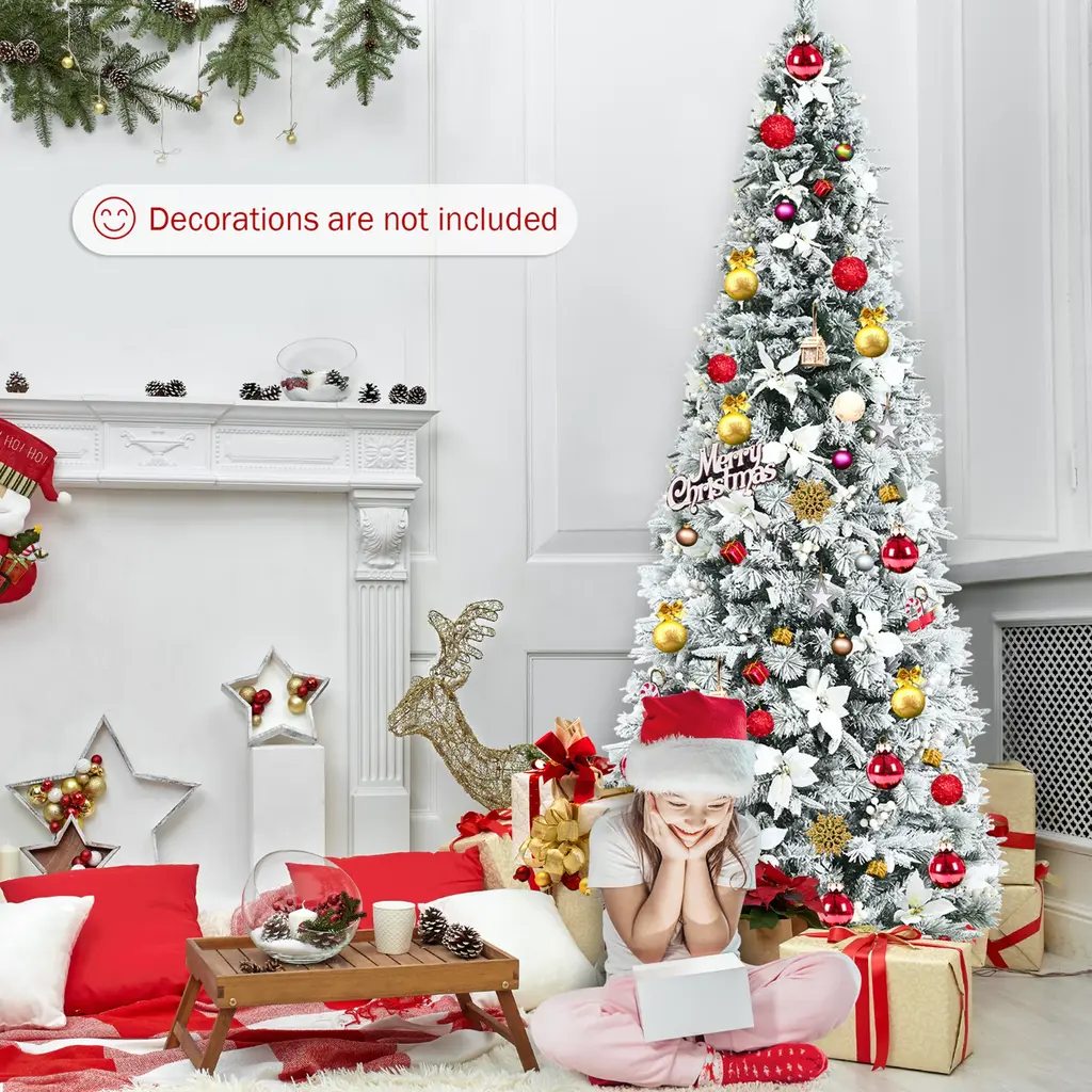 Gymax 5/6/7/8 Ft Artificial Snow Flocked Pencil Christmas Tree W/ - 8 Foot